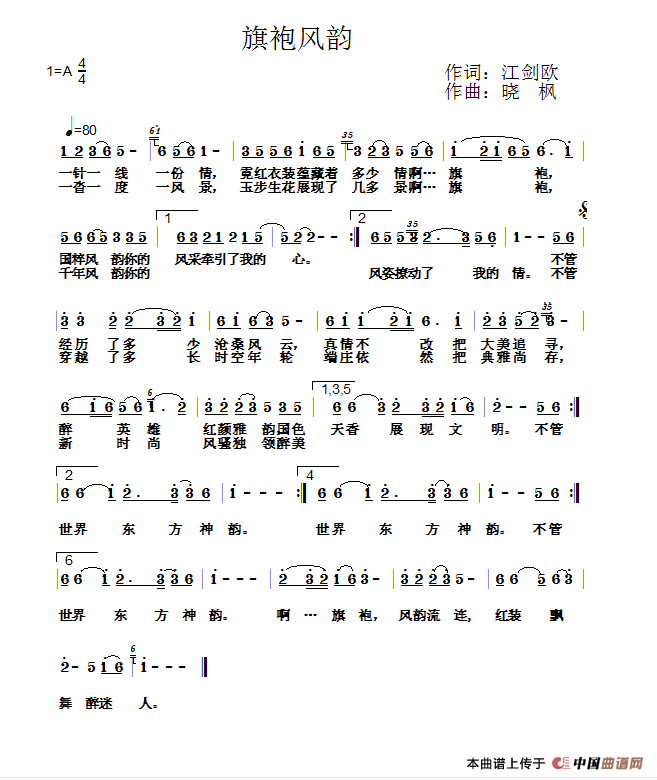 关于《旗袍风韵》曲谱的评论