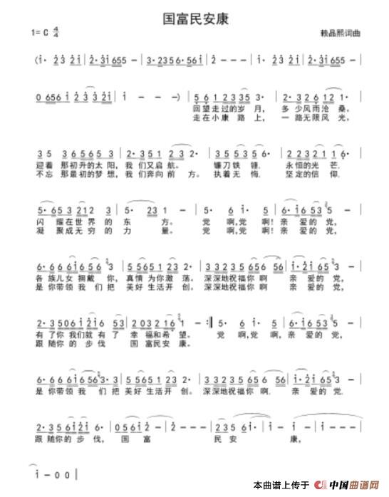 关于《国富民安康》曲谱的评论