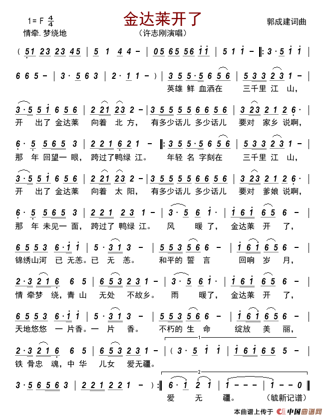 《金达莱开了》文本歌词