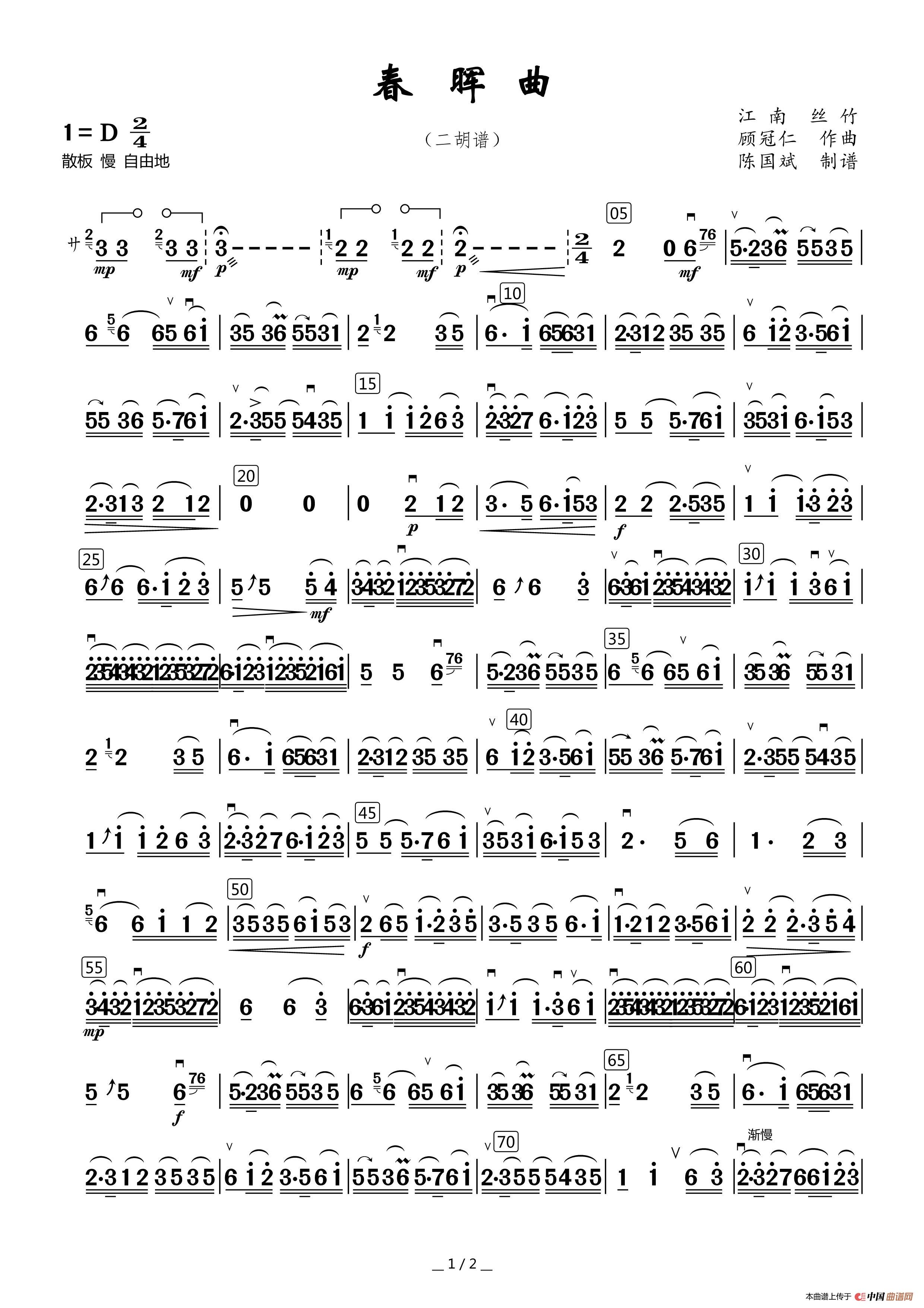 春晖曲(二胡谱)(1)_原文件名:春晖曲二胡谱_Page1.jpg