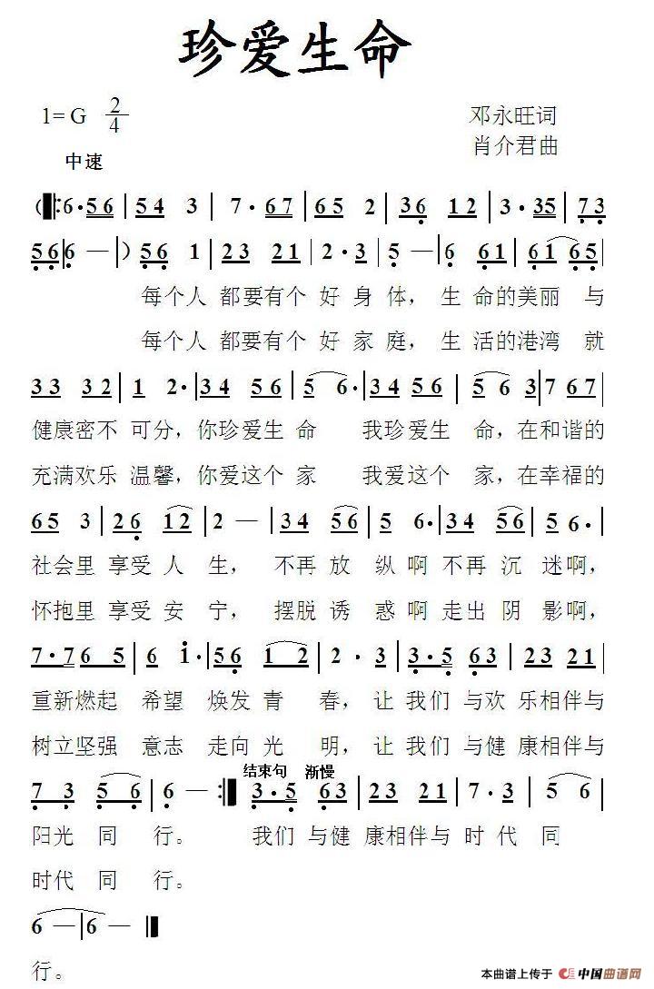 关于《珍爱生命》曲谱的评论