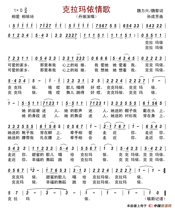 克克玛依,克克玛依。她的身段迷人,她的舞姿迷人,她送的衬衫我穿在身上,她送的腰带我扎在腰上,