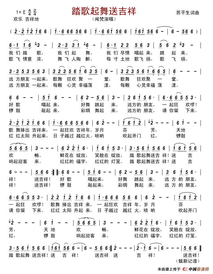 锣鼓响起迎客来。红红的福字,红红的灯笼。踏歌起舞送吉祥!送吉祥!送吉祥!送吉祥!送吉祥!