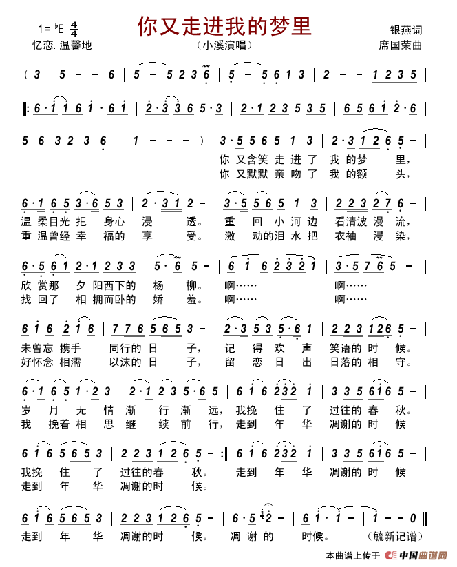 你又含笑走进了我的梦里,笑脸又把身心浸透重回小河边看清波漫流,欣赏那夕阳西下的杨柳。