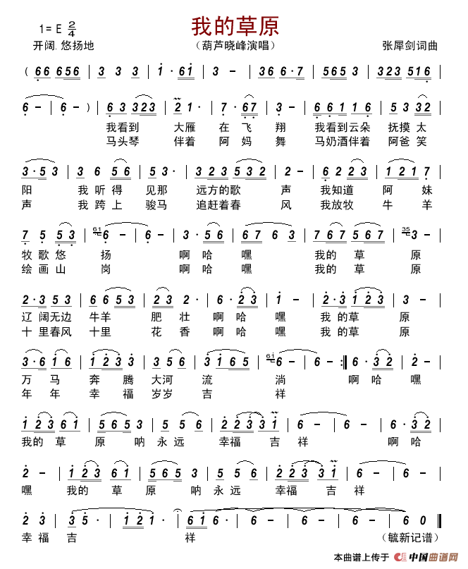 《我的草原(张犀剑词曲) 》文本歌词