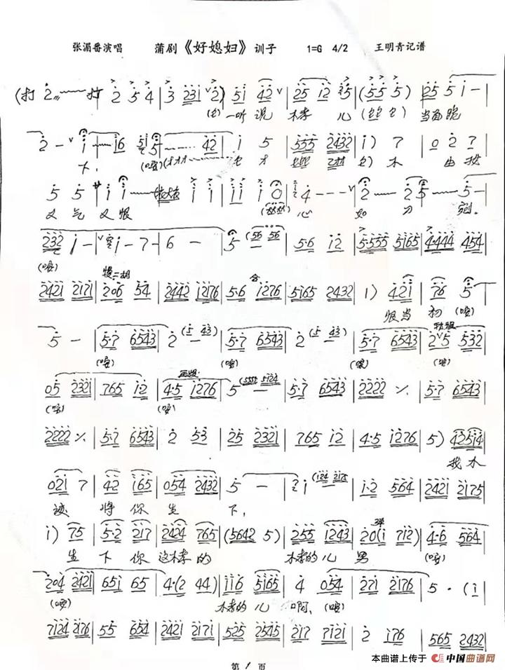 关于《蒲剧《好媳妇》训子》曲谱的评论