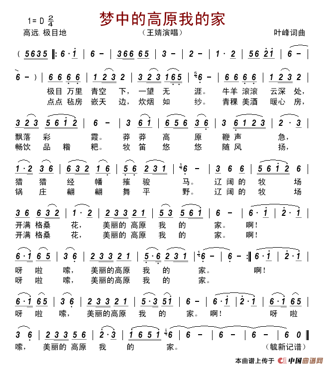 啊!呀啦嗦。梦中的高原我的家。啊!呀啦嗦。梦中的高原我的家。