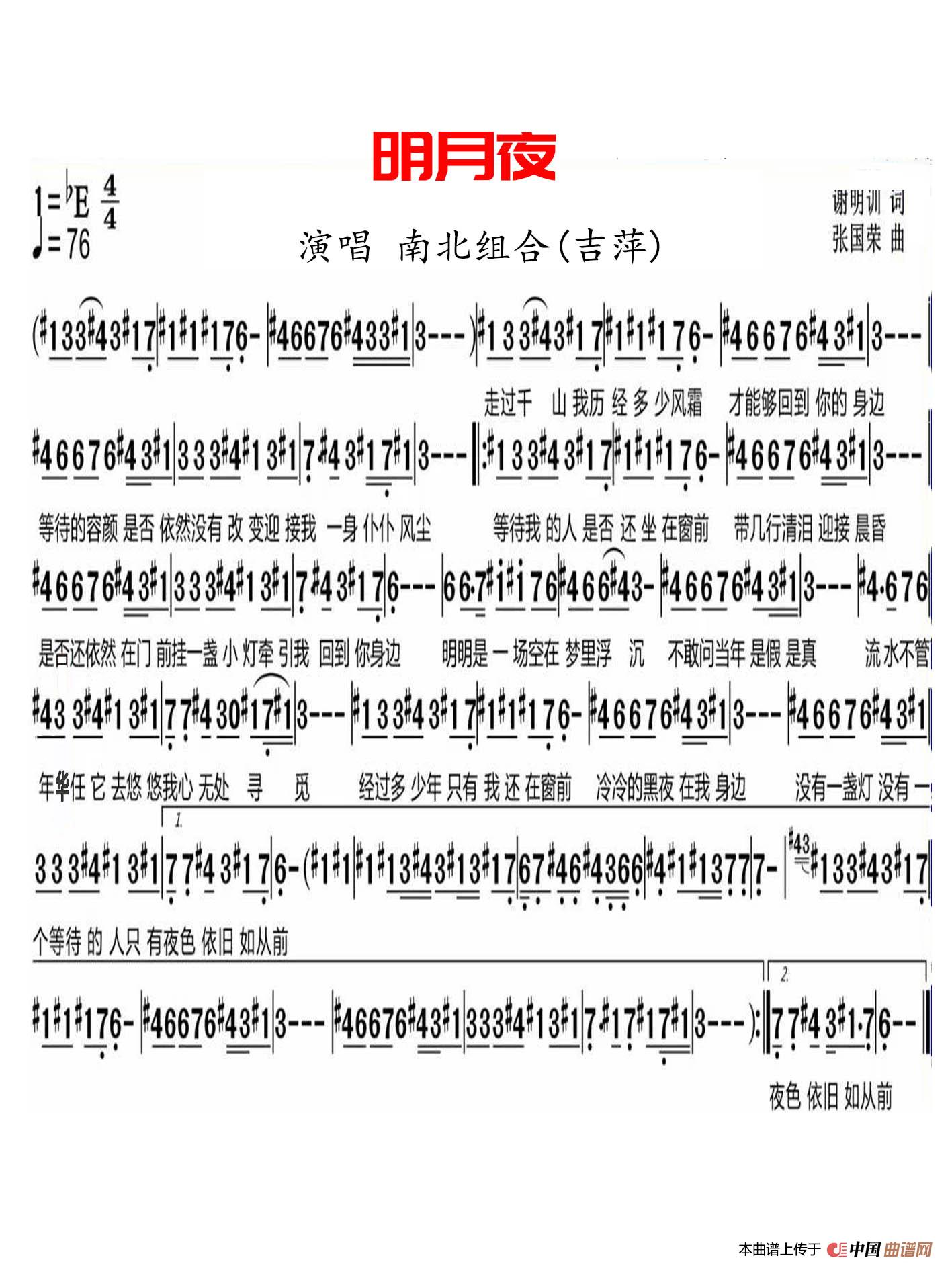 关于《明月夜》曲谱的评论