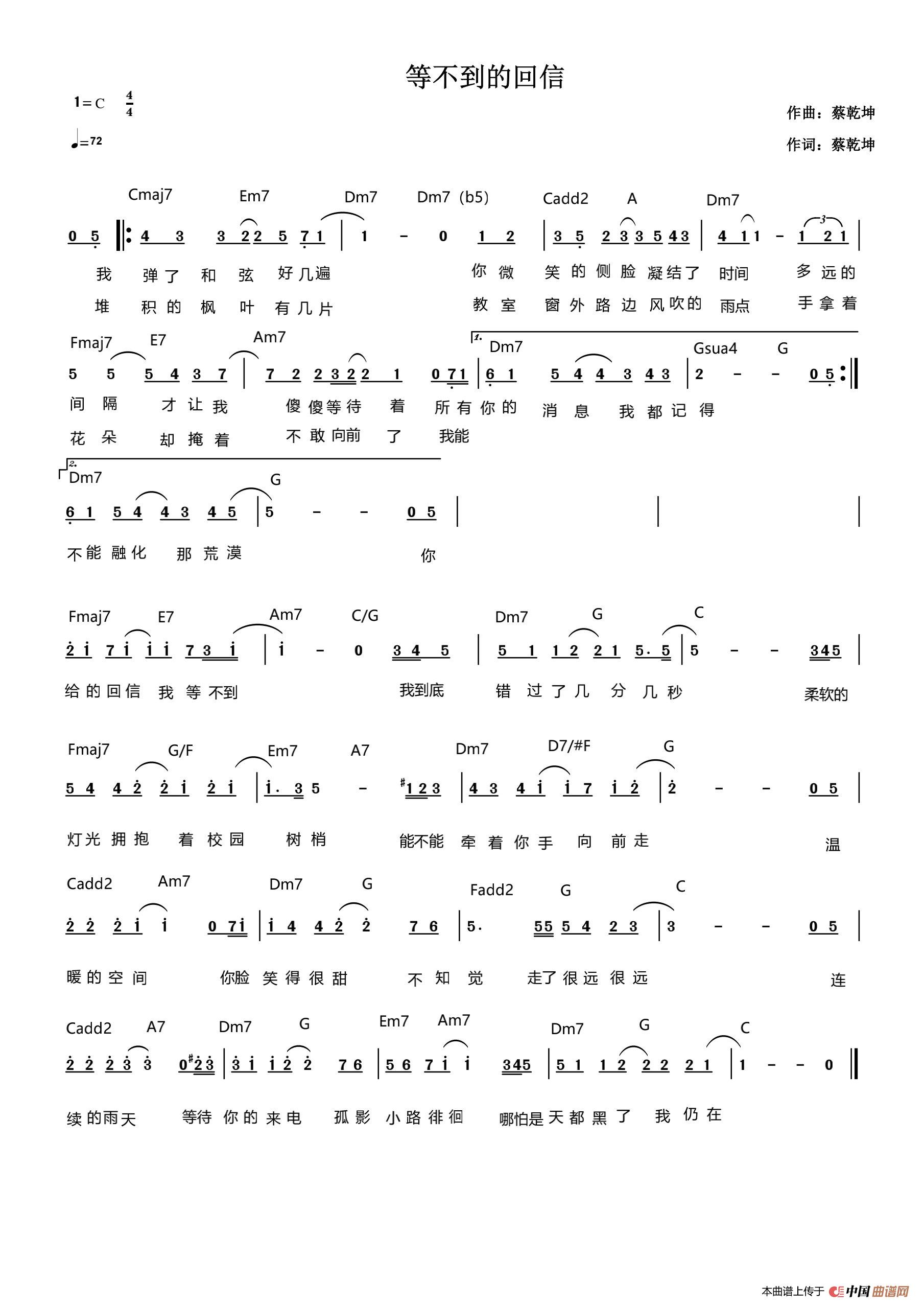 关于《等不到的回信》曲谱的评论