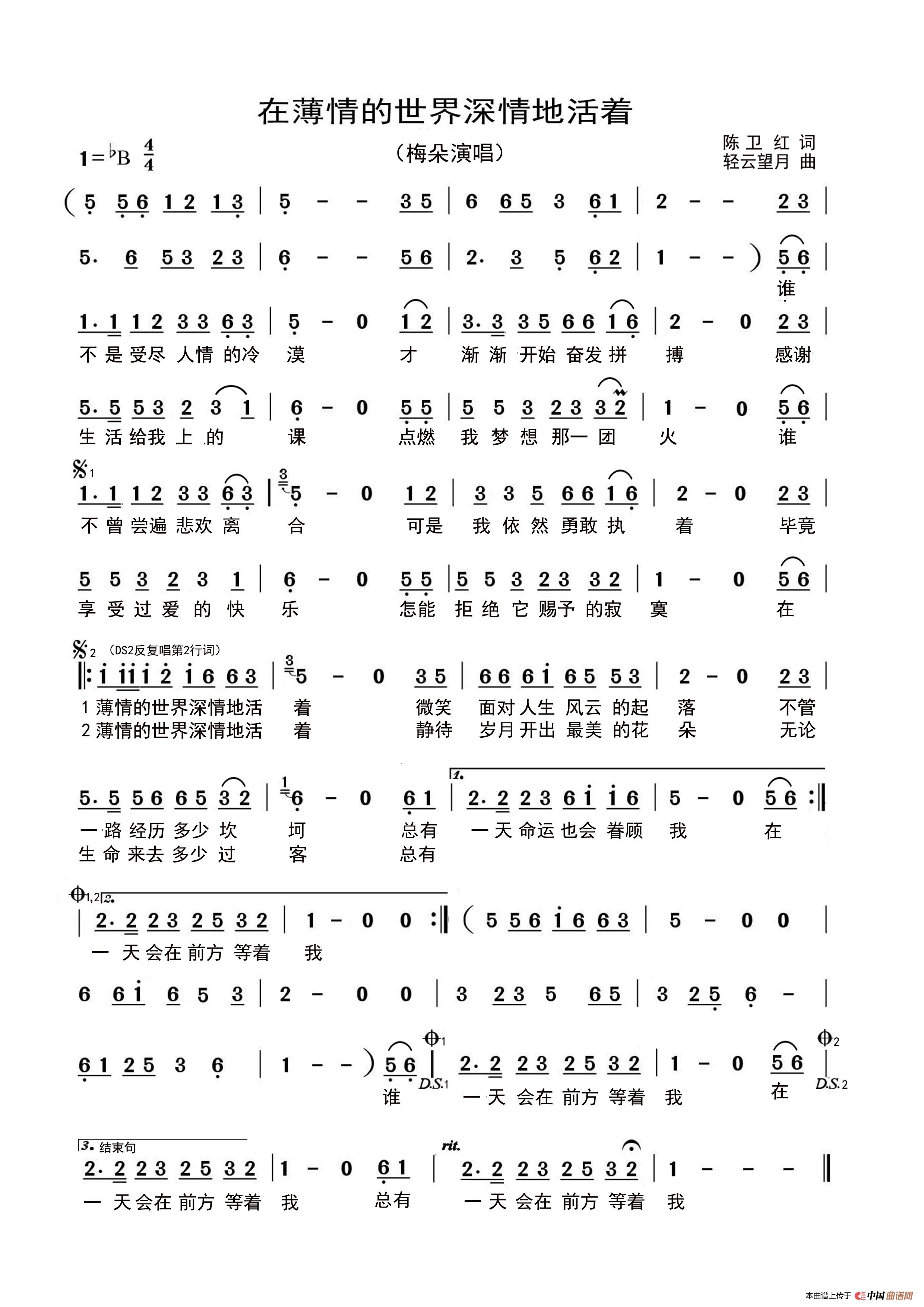 关于《在薄情的世界深情地活着》曲谱的评论
