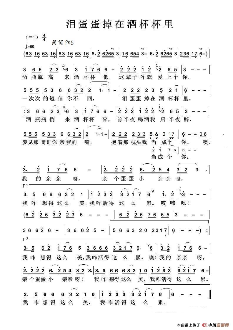 关于《泪蛋蛋掉在酒杯杯里》曲谱的评论