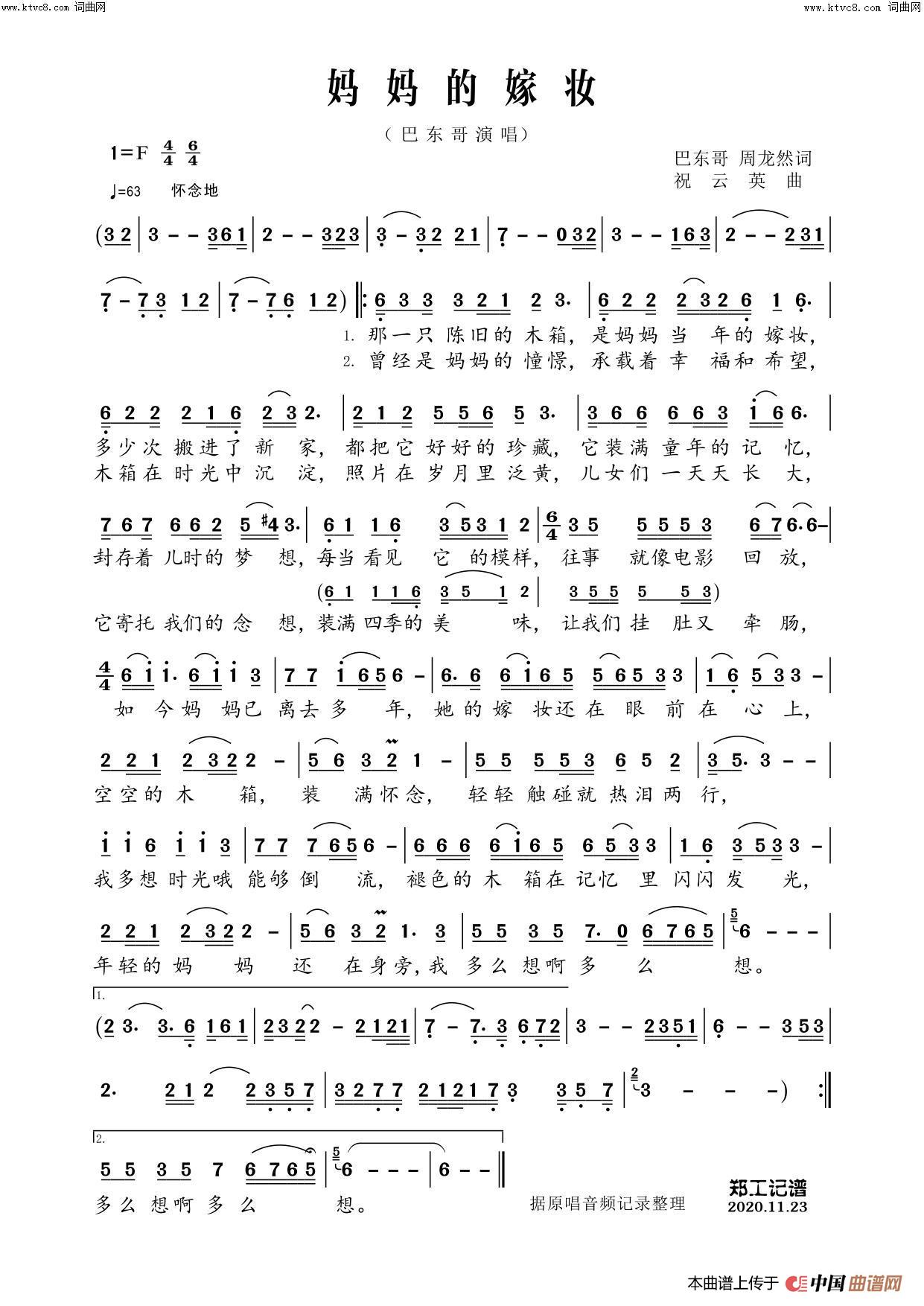 关于《妈妈的嫁妆》曲谱的评论