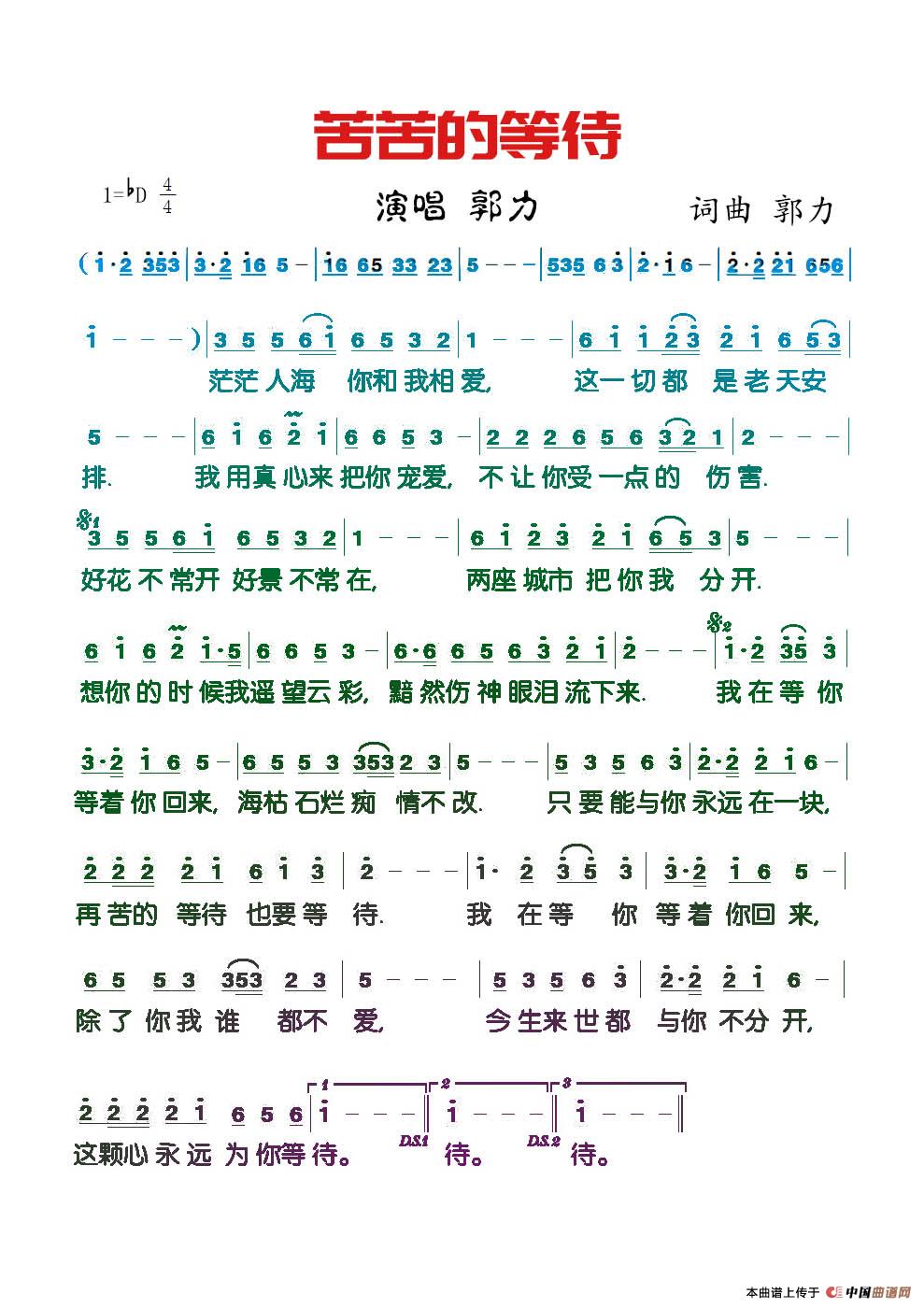 提示:在曲谱图片上单击右键,选择“图片另存为...”即可将曲谱保存到您的电脑中,打印时候可将图片插入到WORD中,调整合适大小打印即可。