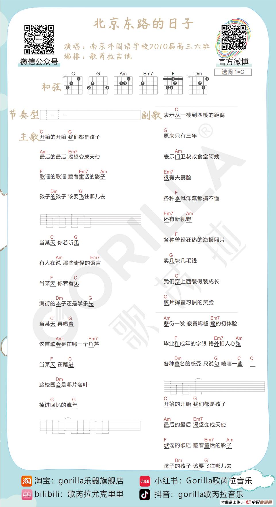 《北京东路的日子》吉他曲谱
