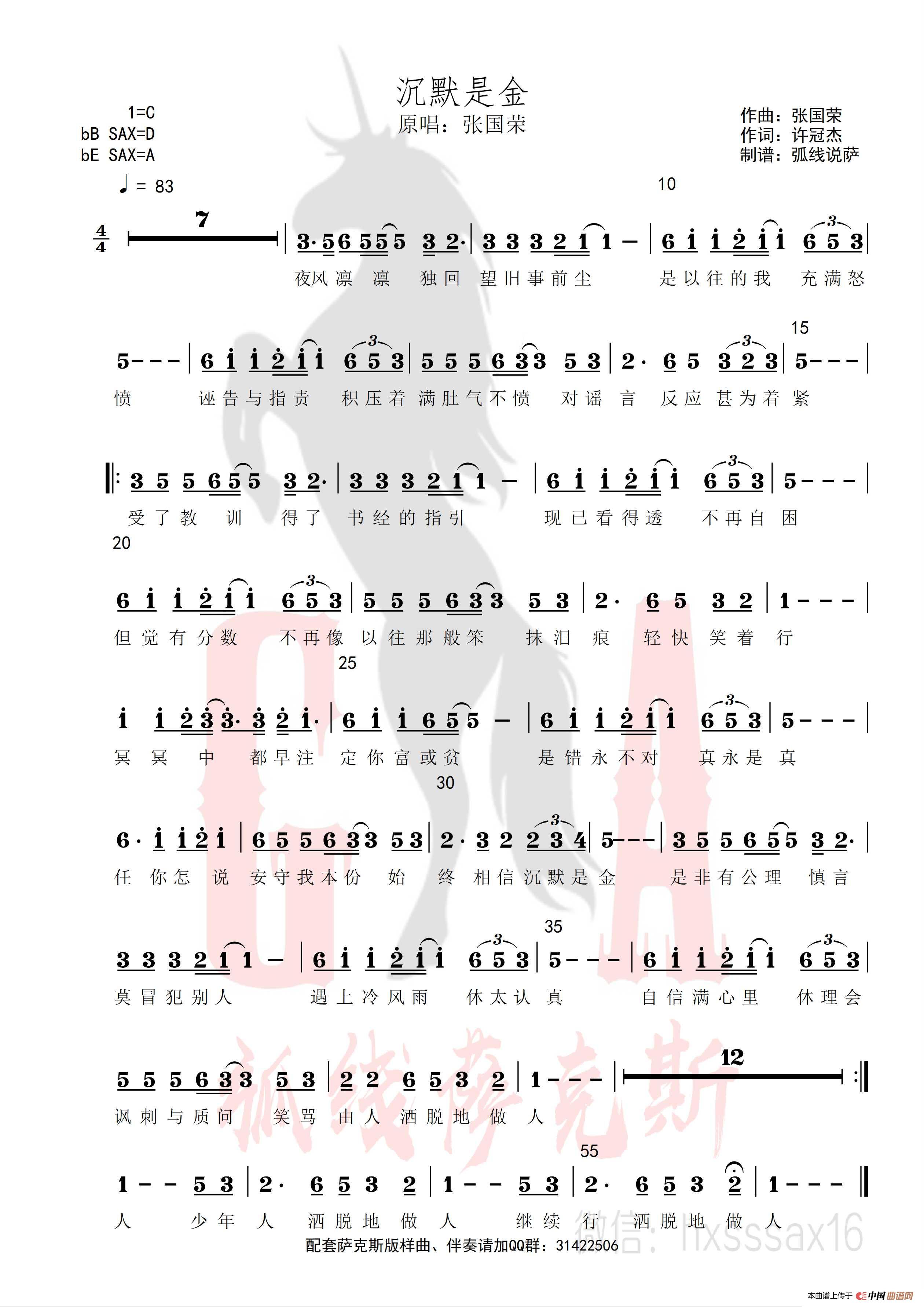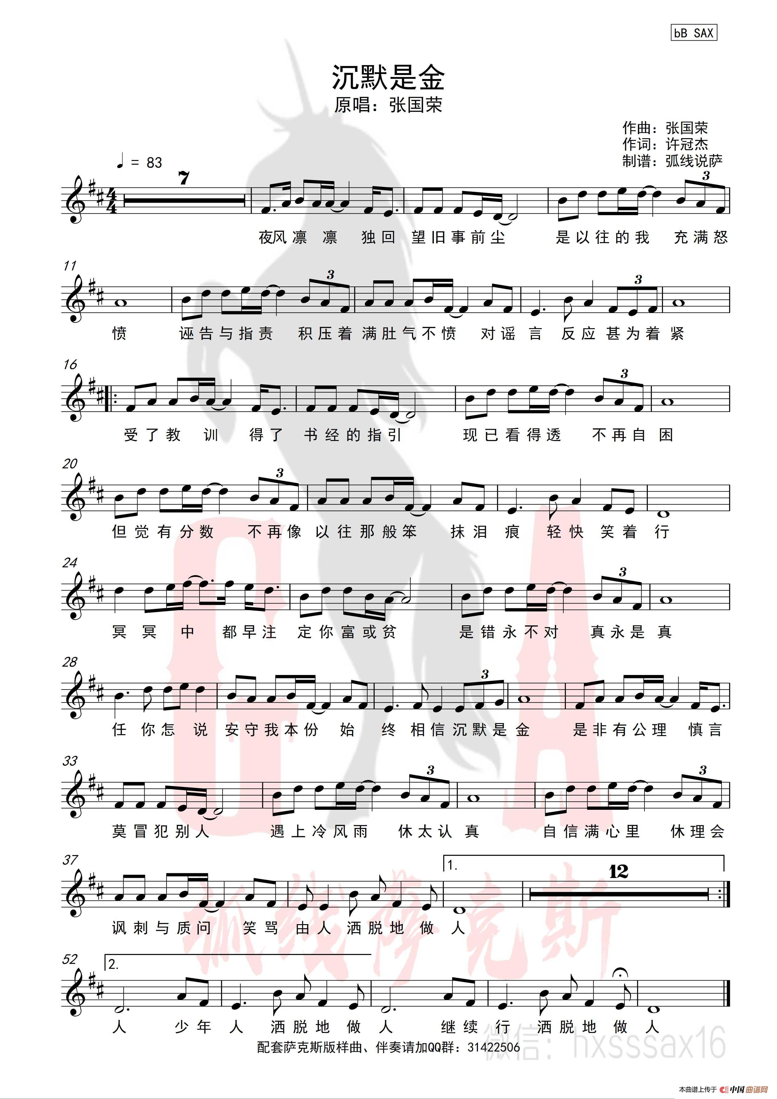 提示:在曲谱图片上单击右键,选择“图片另存为...”即可将曲谱保存到您的电脑中,打印时候可将图片插入到WORD中,调整合适大小打印即可。