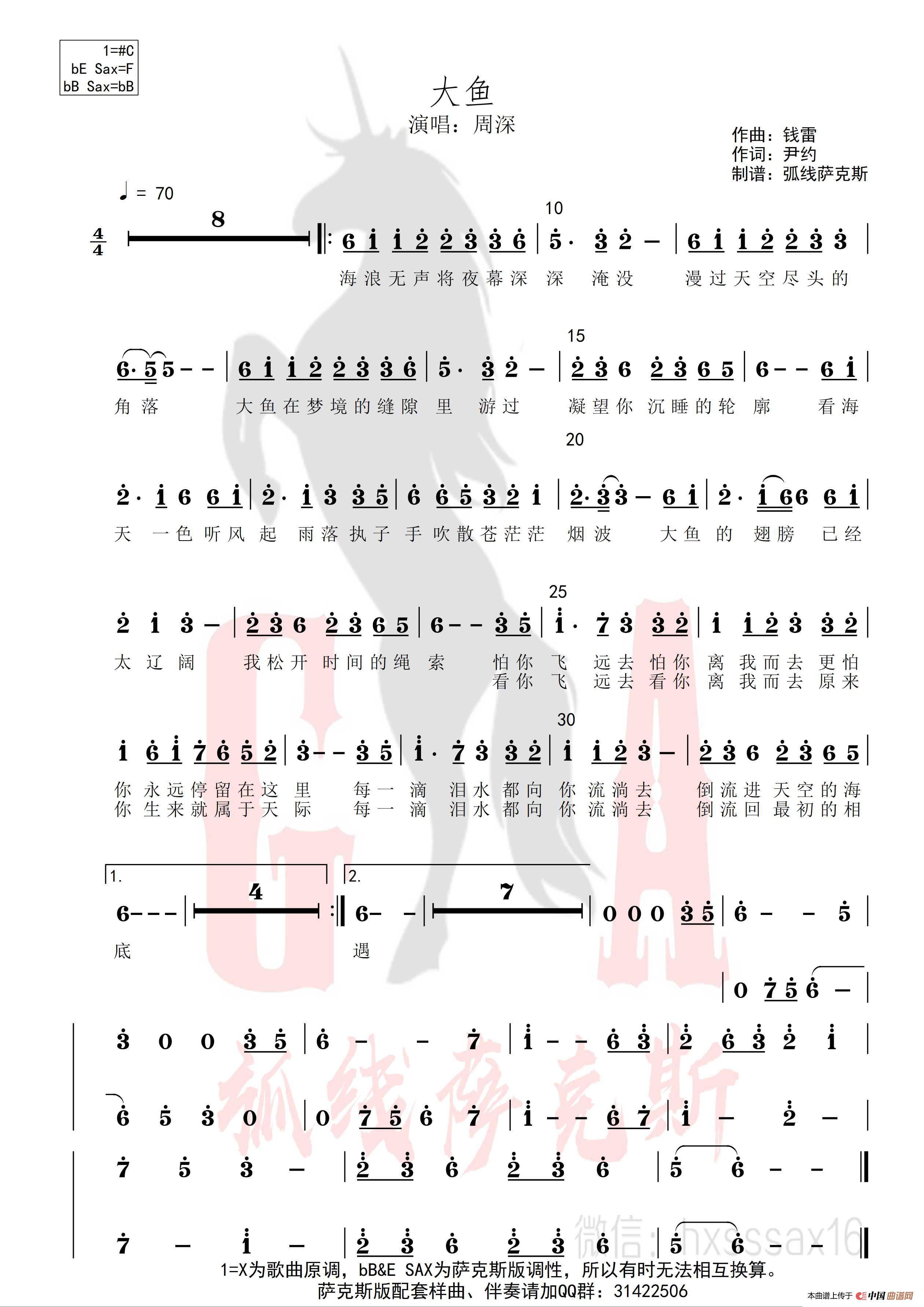 提示:在曲谱图片上单击右键,选择“图片另存为...”即可将曲谱保存到您的电脑中,打印时候可将图片插入到WORD中,调整合适大小打印即可。