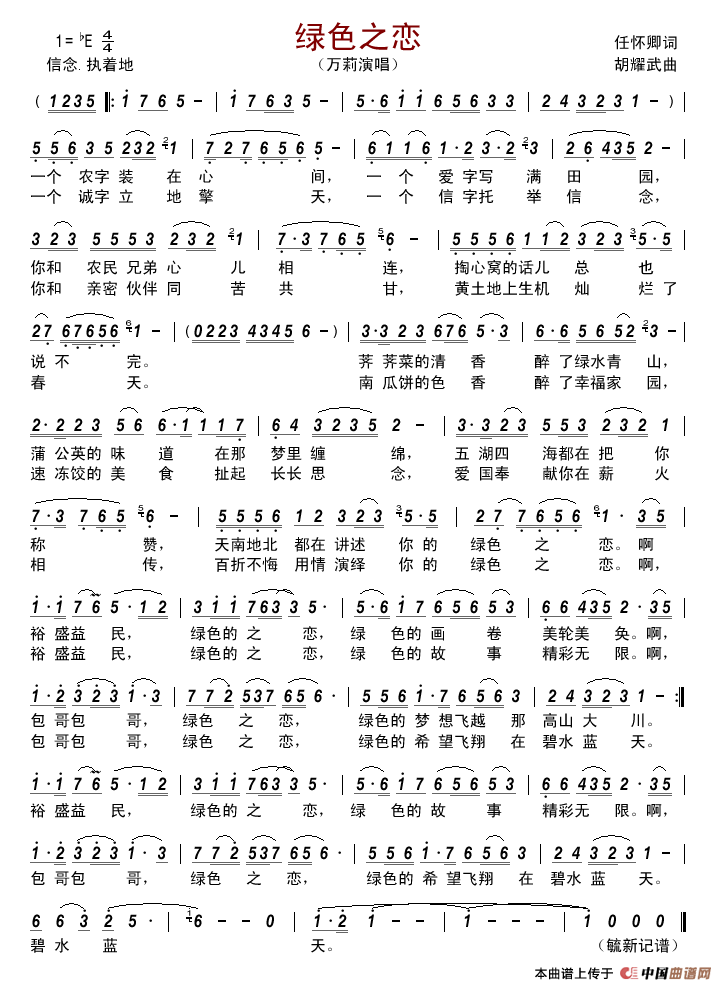 一个农字装在心间,一个爱字写满田园,你和农民兄弟心儿相连,掏心窝子的话儿总也说不完。荠荠菜的清香醉了绿水青山,蒲公英的味道在那梦里缠绵,五湖四海都在把你称赞,天南地北都在讲述你的绿色之恋。啊,裕盛益民,绿色之恋,绿色的画卷美轮美奂。啊,包哥包哥,绿色之恋,绿色的梦想飞越那高山大川。