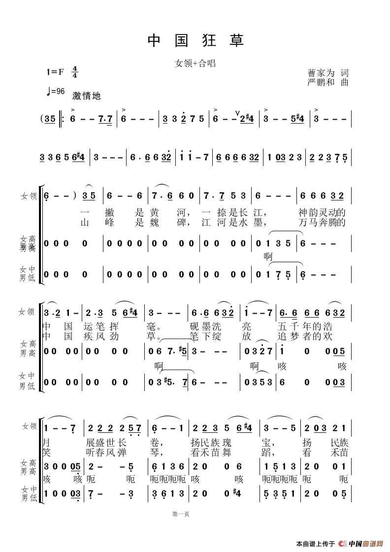提示:在曲谱图片上单击右键,选择“图片另存为...”即可将曲谱保存到您的电脑中,打印时候可将图片插入到WORD中,调整合适大小打印即可。