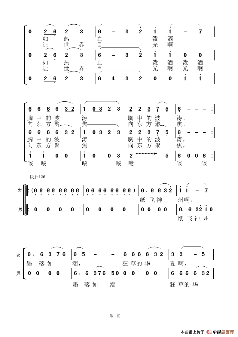 山峰是魏碑,江河是水墨,万马奔腾的中国疾风劲草。笔下绽放追梦者的欢笑听春风弹琴,看禾苗舞蹈,看禾苗舞蹈。你写下气呑日月的诗篇,你写下美妙动人的歌谣,花一样娇艳,火一样激情,让世界目光向东方聚焦。