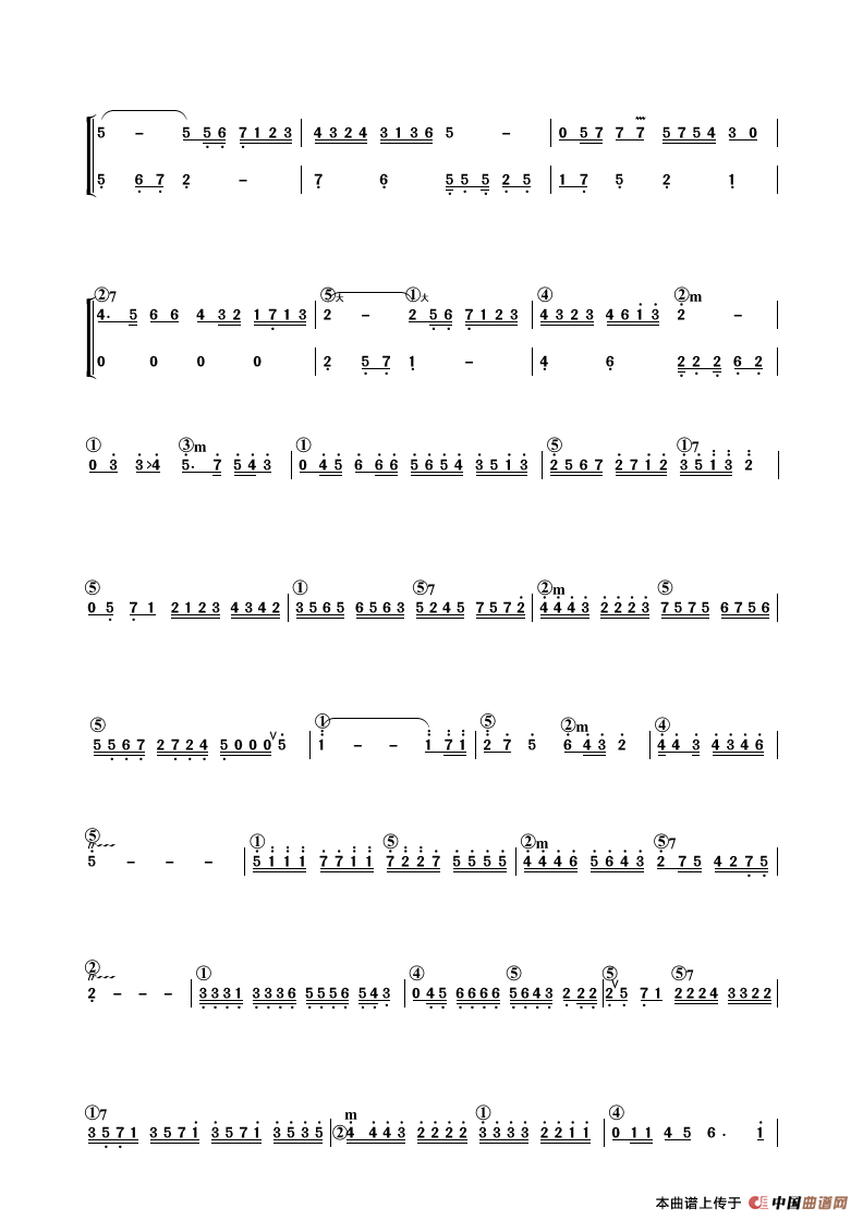 提示:在曲谱图片上单击右键,选择“图片另存为...”即可将曲谱保存到您的电脑中,打印时候可将图片插入到WORD中,调整合适大小打印即可。