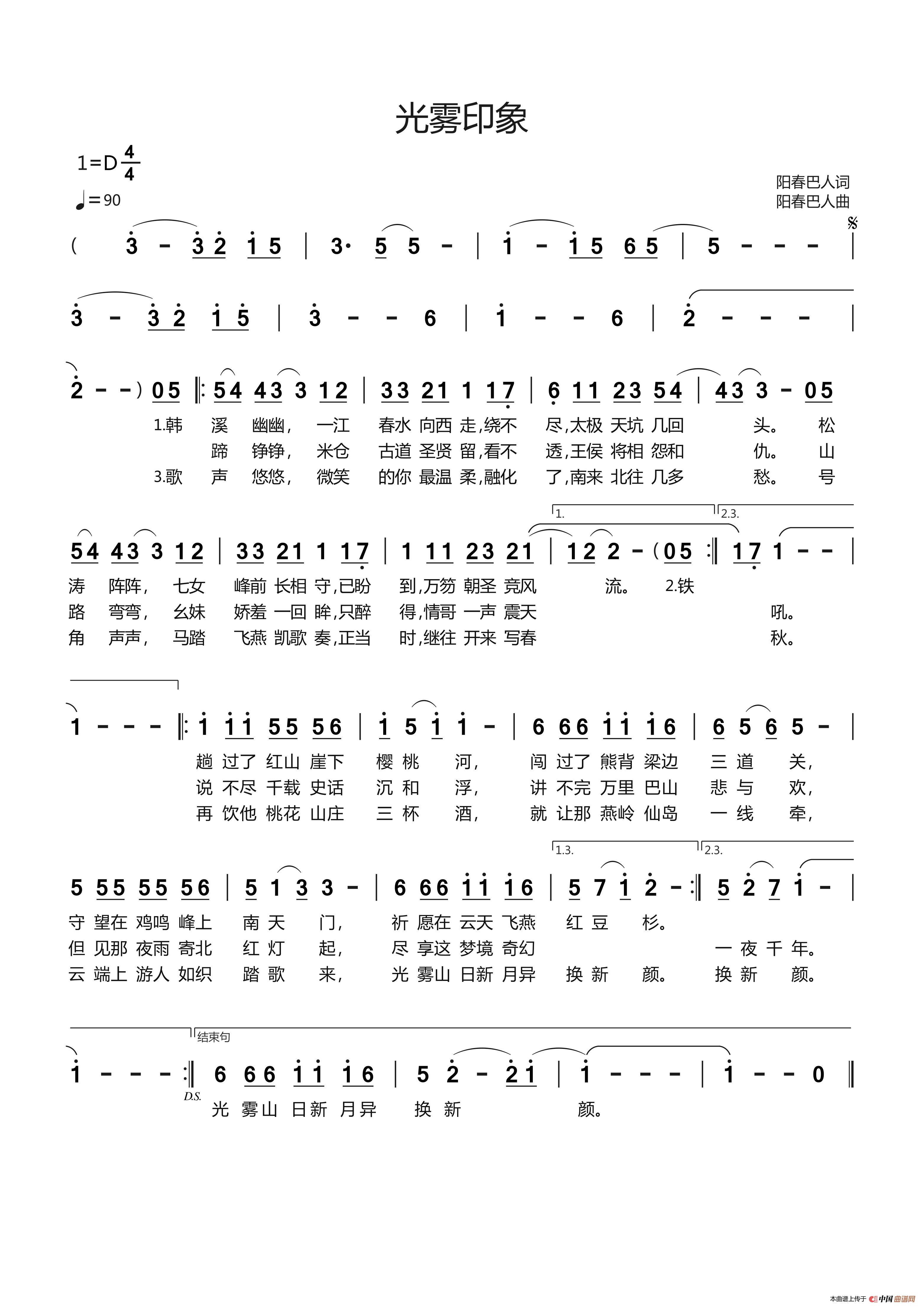 关于《光雾印象》曲谱的评论