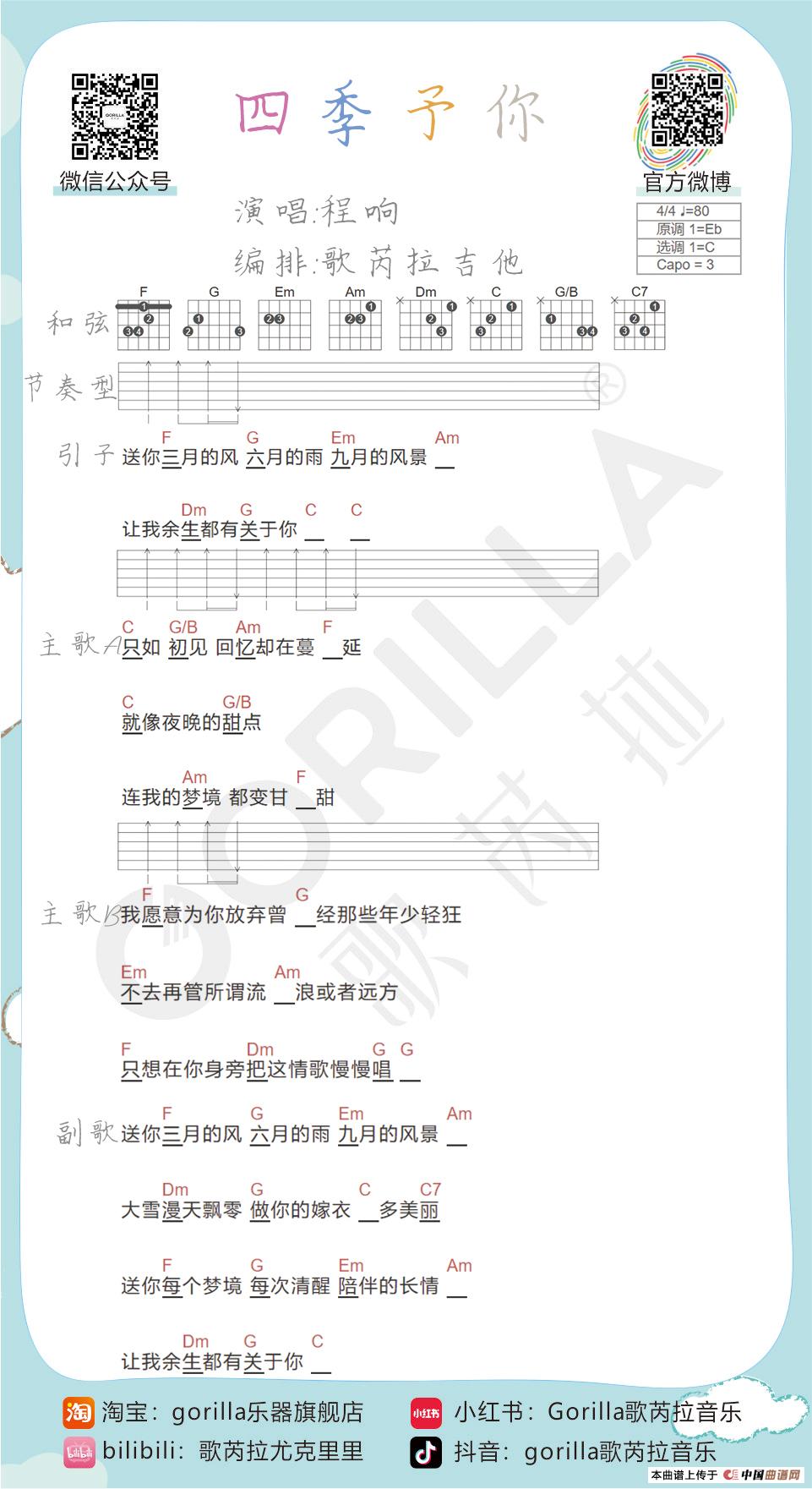 《四季予你》吉他曲谱教学