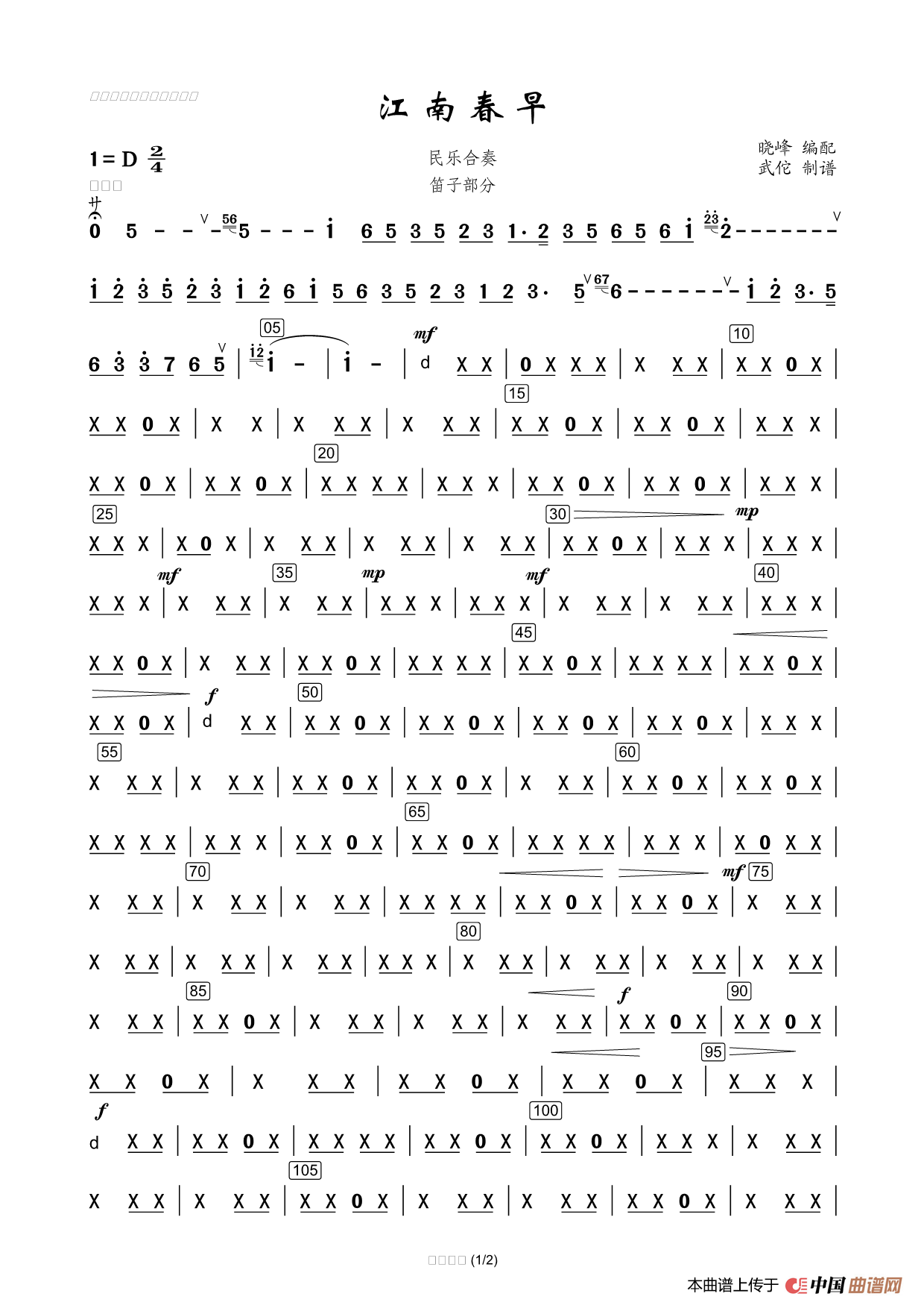 作词:晓峰编配 来源:个人制谱 上传:李wutuo