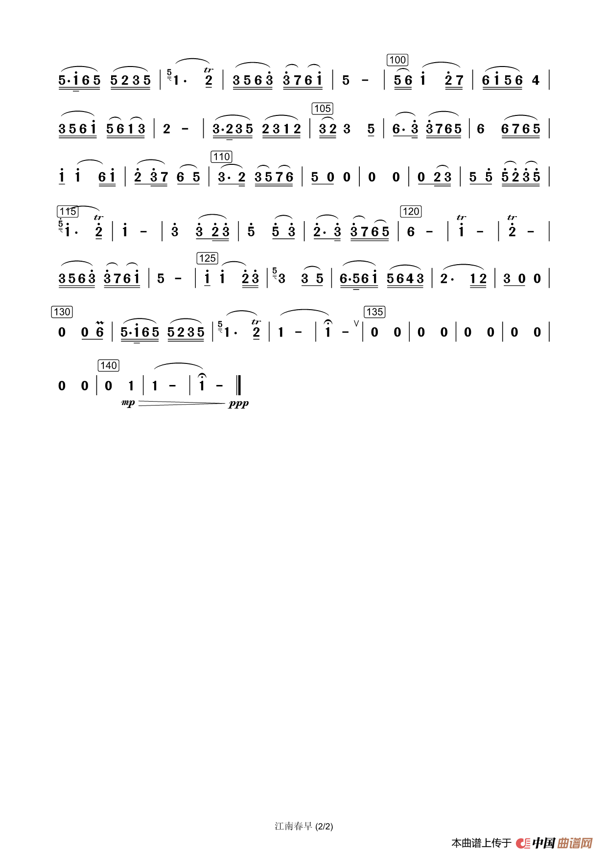 关于《江南春早分谱》曲谱的评论