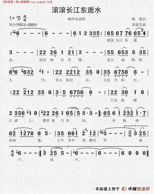 关于《滾滾長江東逝流》曲谱的评论