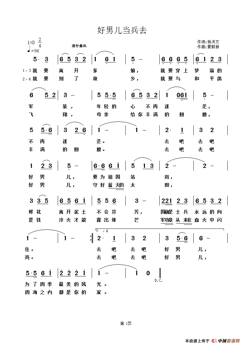 关于《好男儿当兵去》曲谱的评论