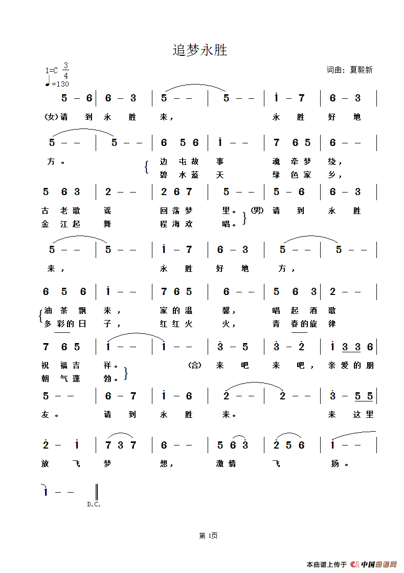 提示:在曲谱图片上单击右键,选择“图片另存为...”即可将曲谱保存到您的电脑中,打印时候可将图片插入到WORD中,调整合适大小打印即可。