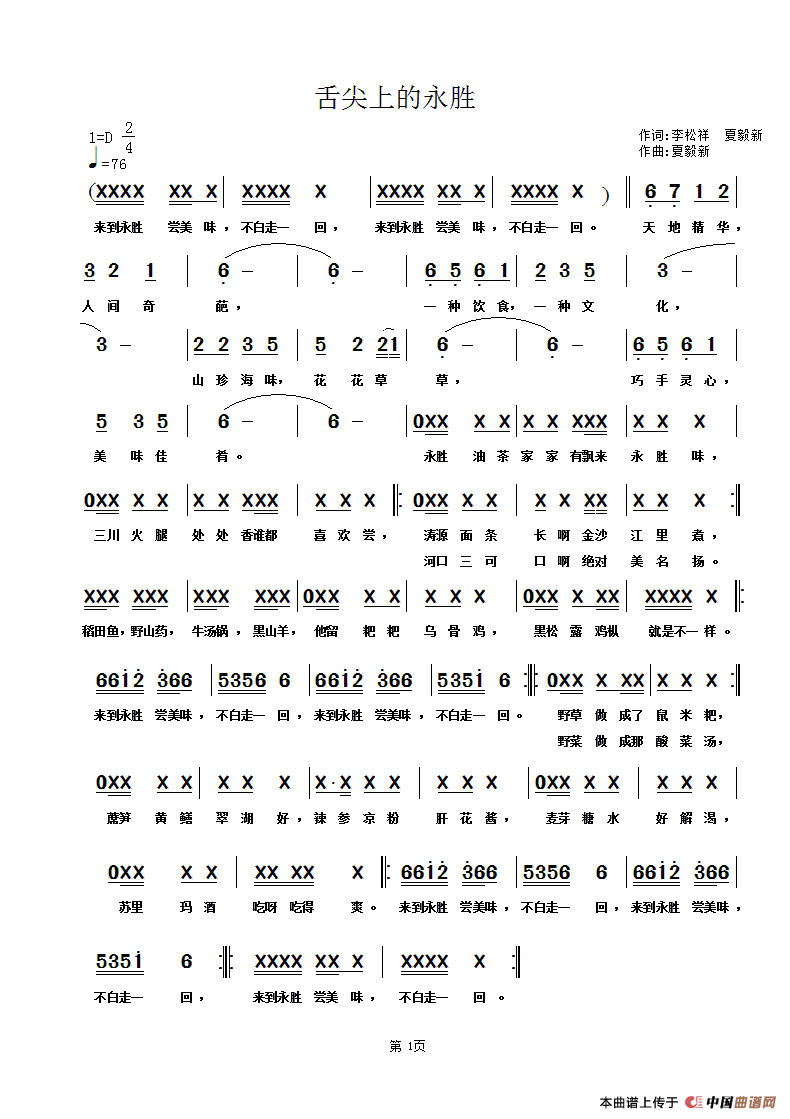 关于《舌尖上的永胜(3)》曲谱的评论