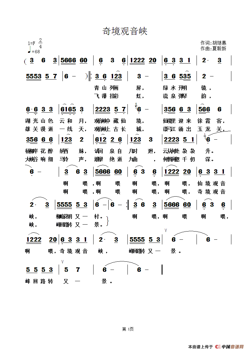 提示:在曲谱图片上单击右键,选择“图片另存为...”即可将曲谱保存到您的电脑中,打印时候可将图片插入到WORD中,调整合适大小打印即可。