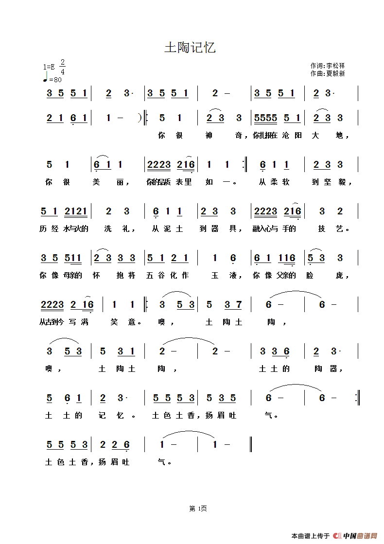 关于《土陶记忆》曲谱的评论