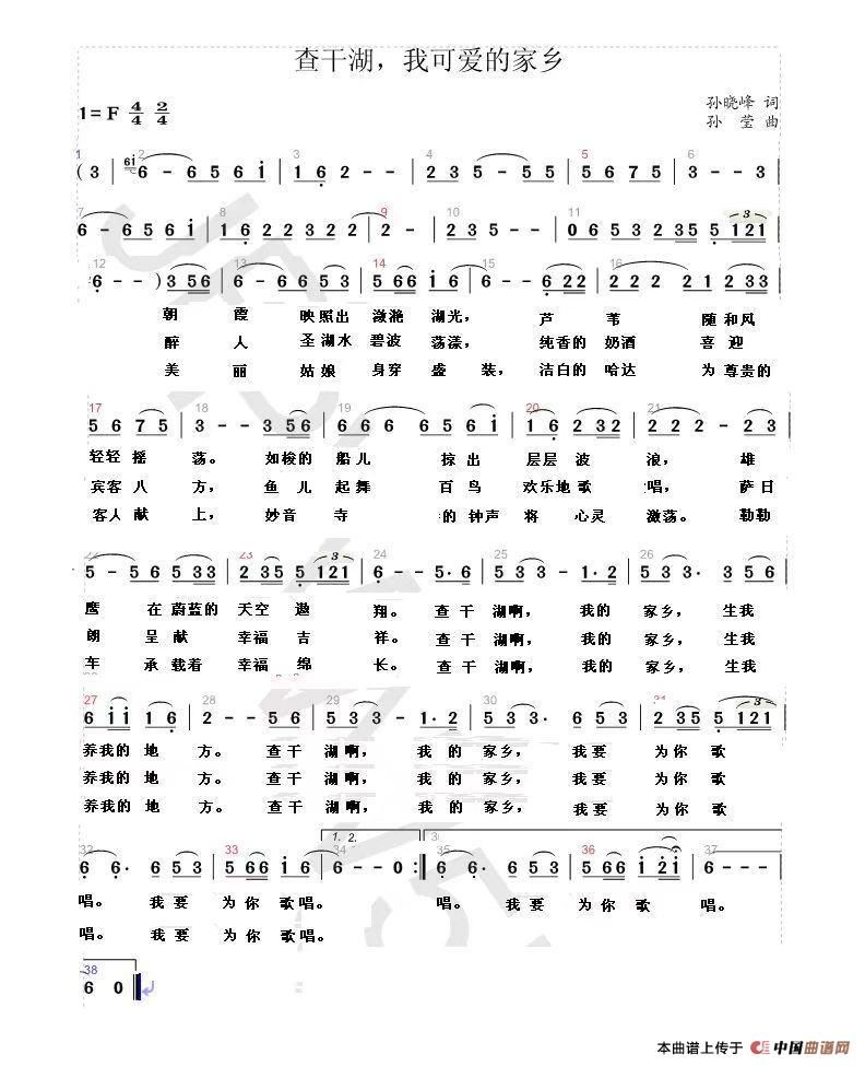 关于《查干湖,我可爱的家乡》曲谱的评论