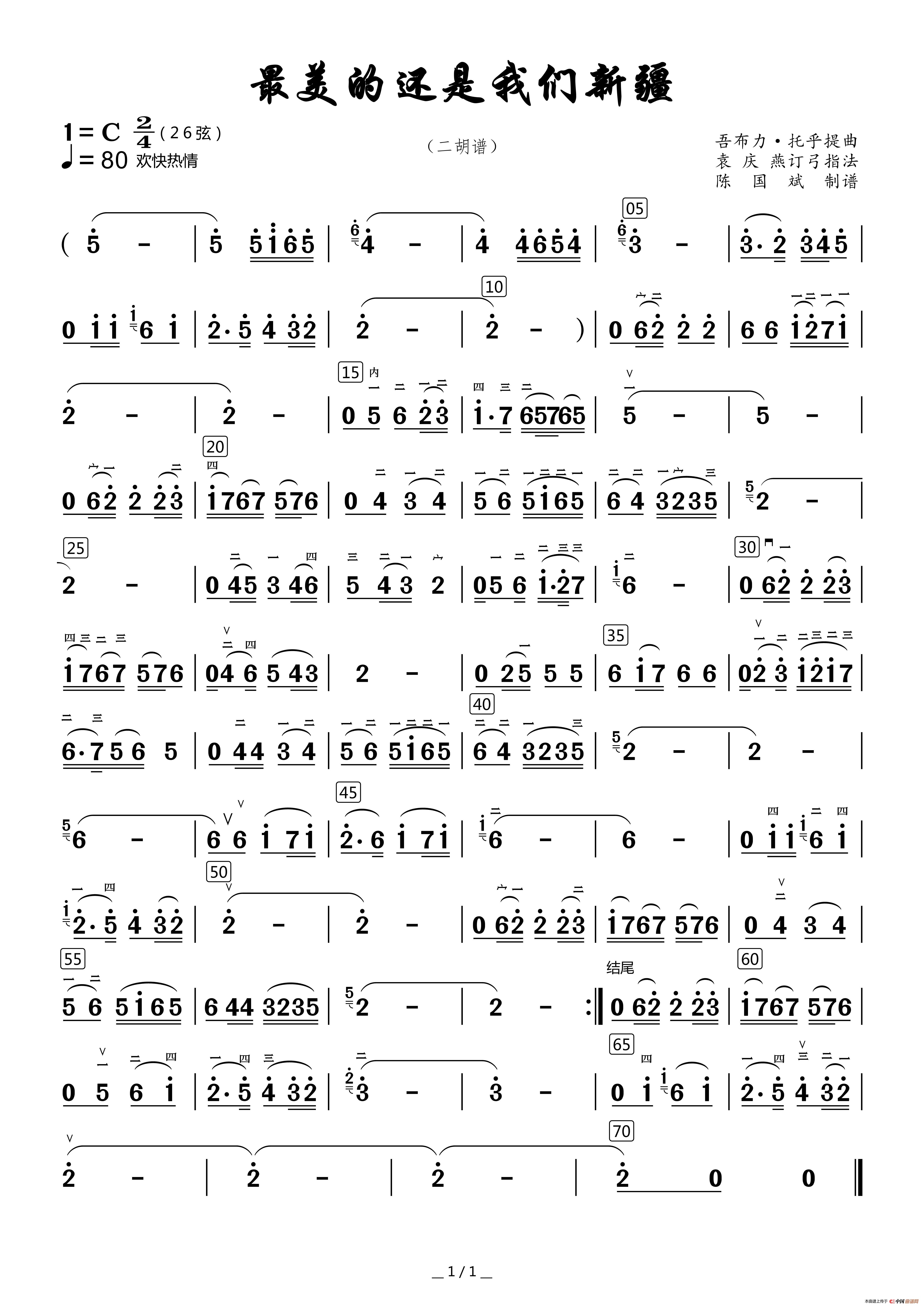 最美的还是我们新疆(二胡谱)(1)_原文件名:最美的还是我们新疆.jpg