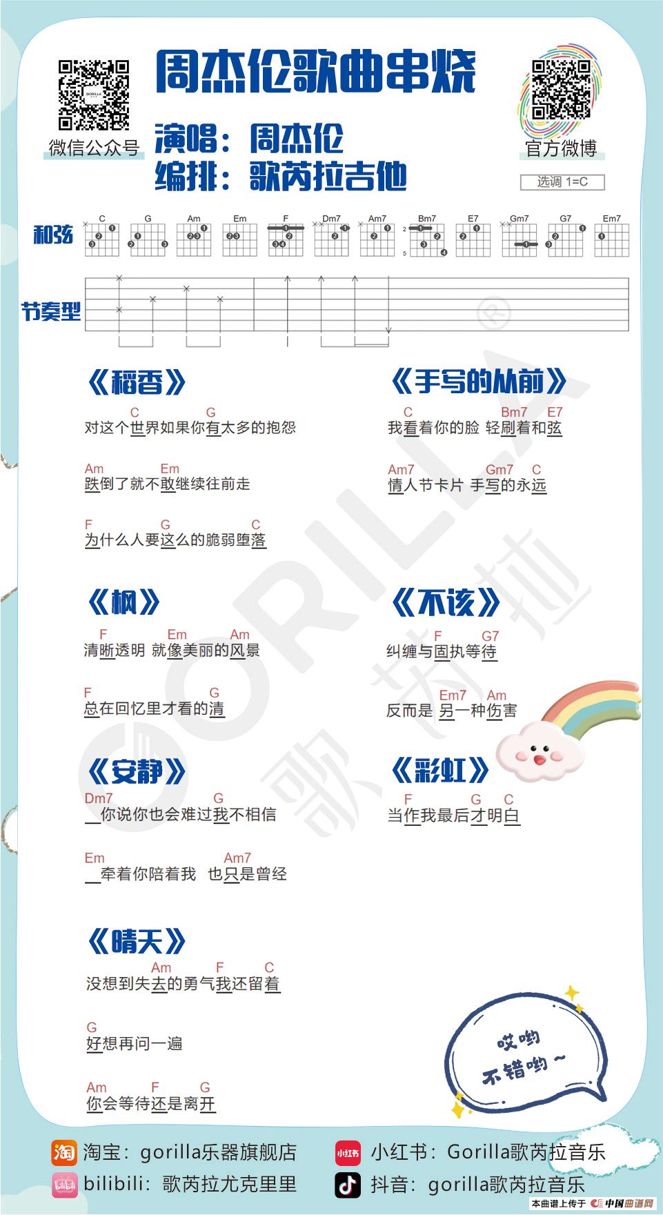 周杰伦歌曲串烧吉他曲谱