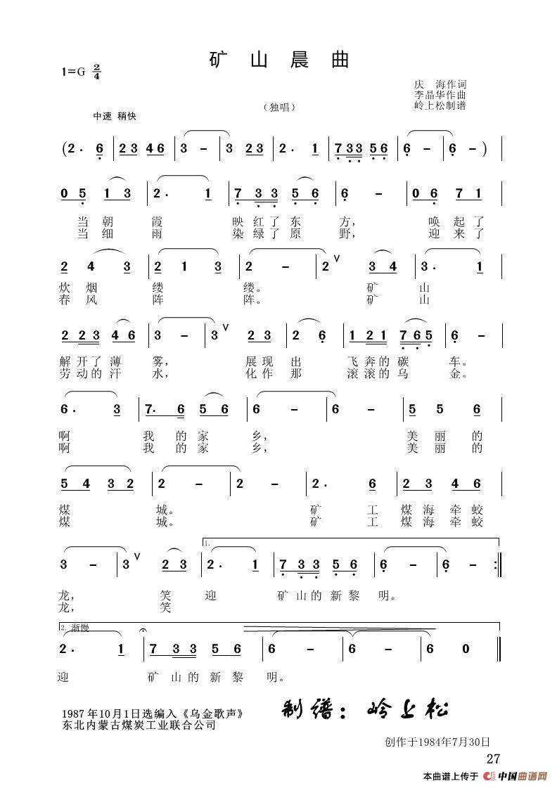 关于《矿山晨曲》曲谱的评论