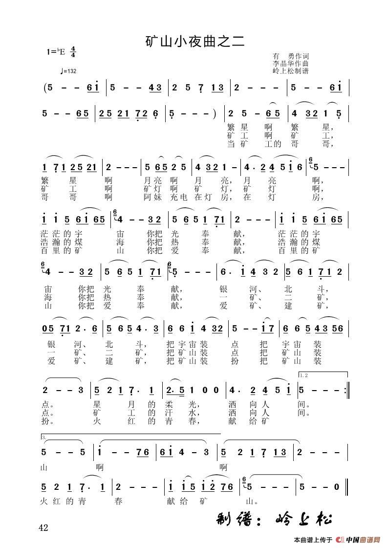 关于《矿山小夜曲之二》曲谱的评论