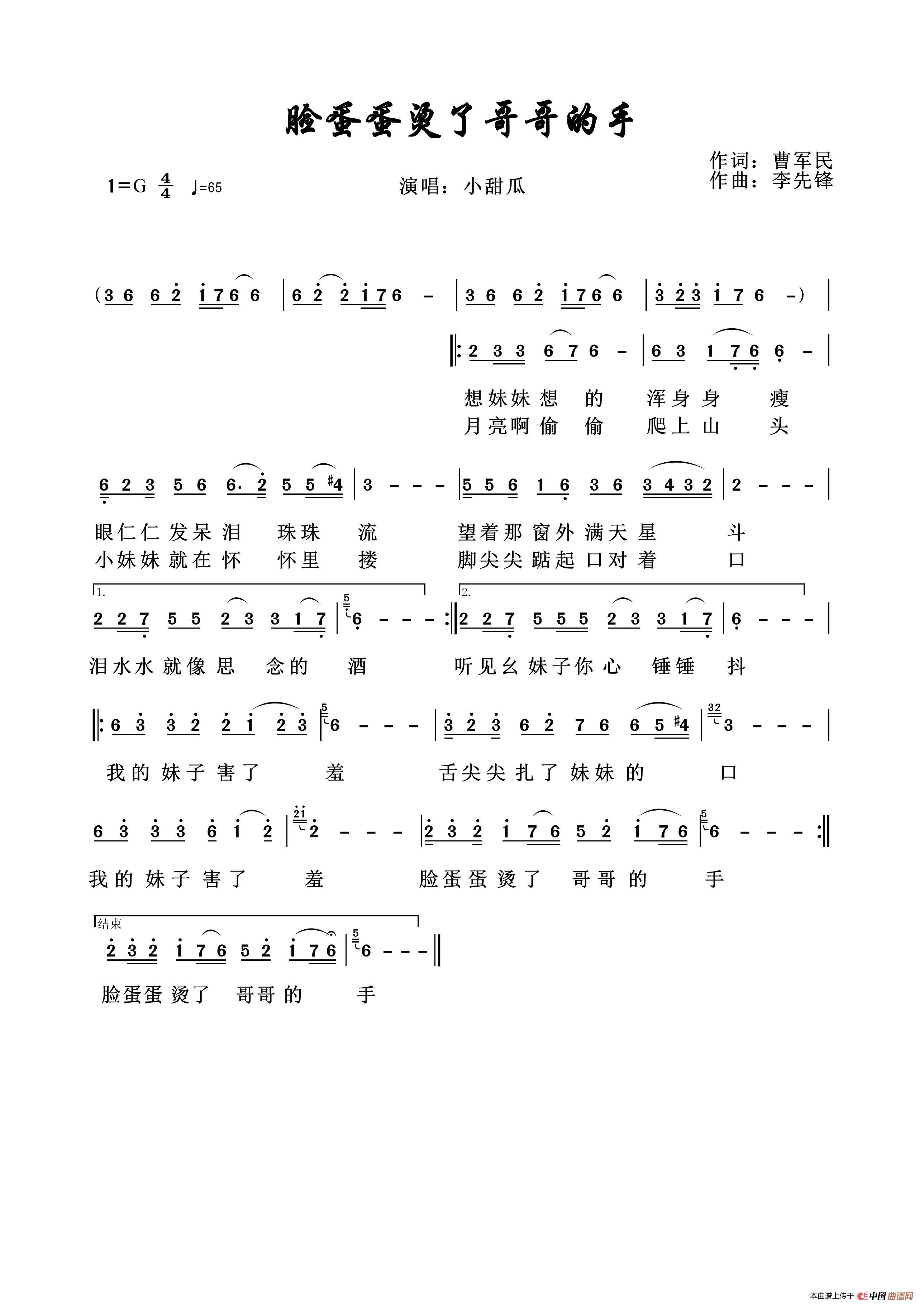 关于《脸蛋蛋烫了哥哥的手》曲谱的评论