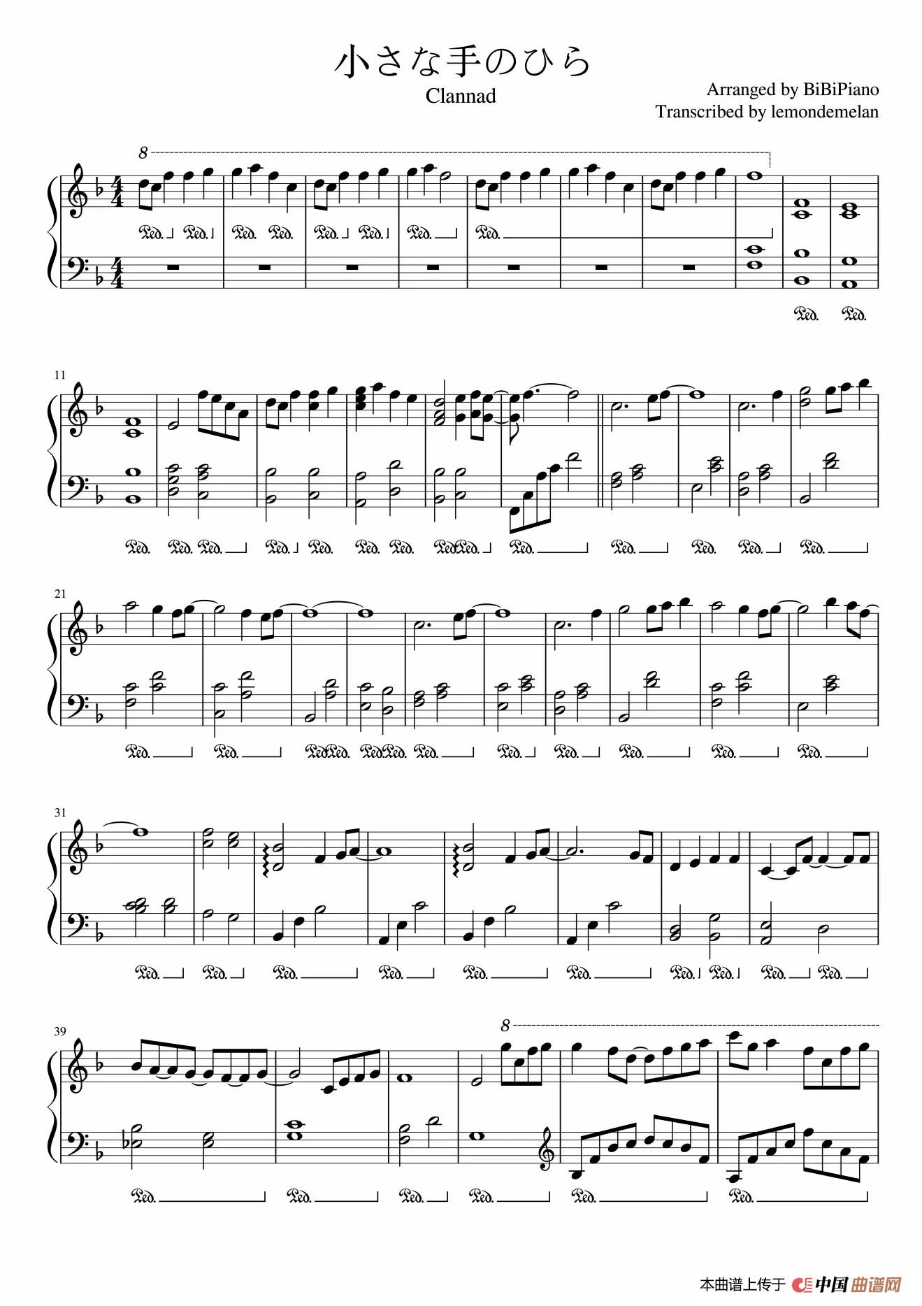 钢琴扒谱:lemondemelan(https://space.bilibili.com/649303634/)