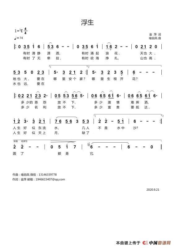 关于《浮生》曲谱的评论