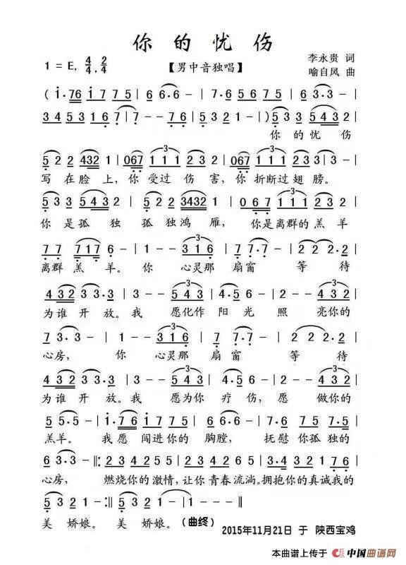 关于《你的忧伤》曲谱的评论