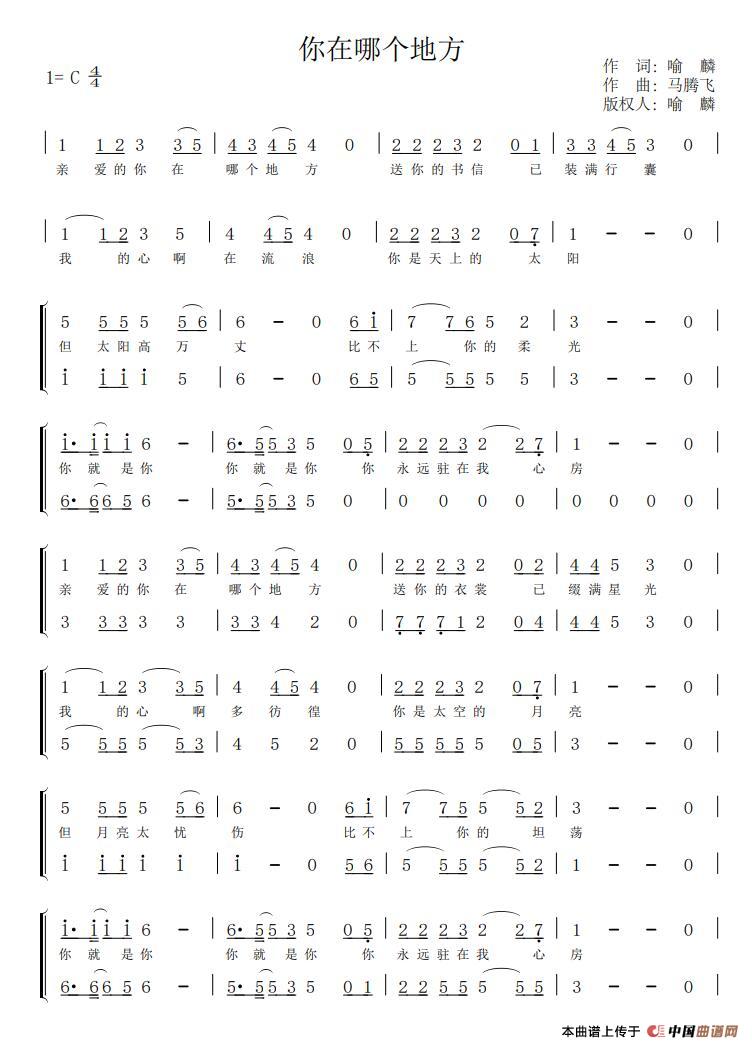 关于《你在哪个地方》曲谱的评论