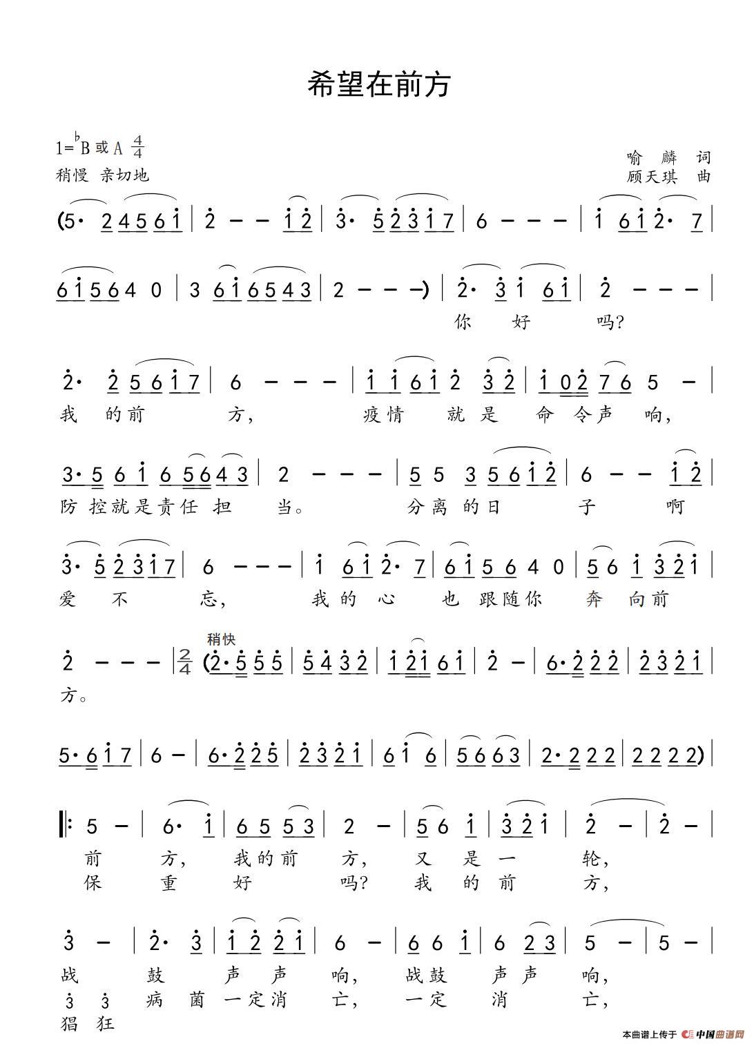 关于《希望在前方》曲谱的评论