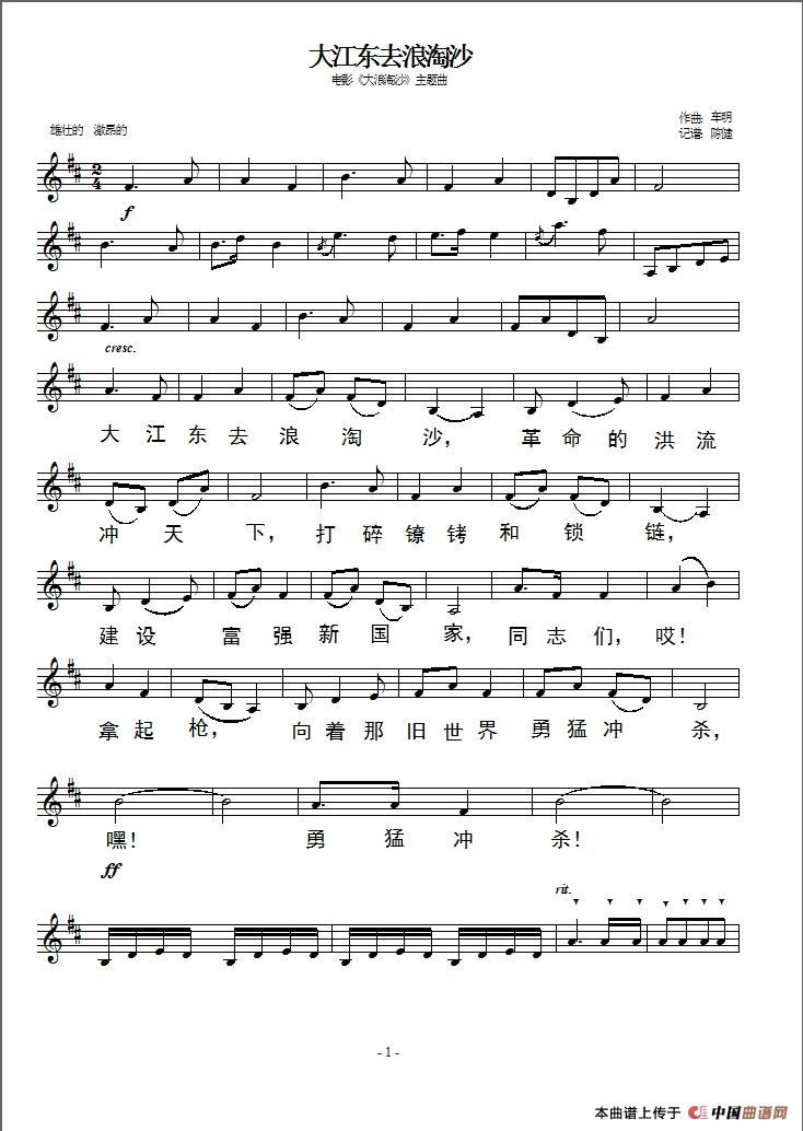 关于《大江东去浪淘沙(五线谱版)》曲谱的评论
