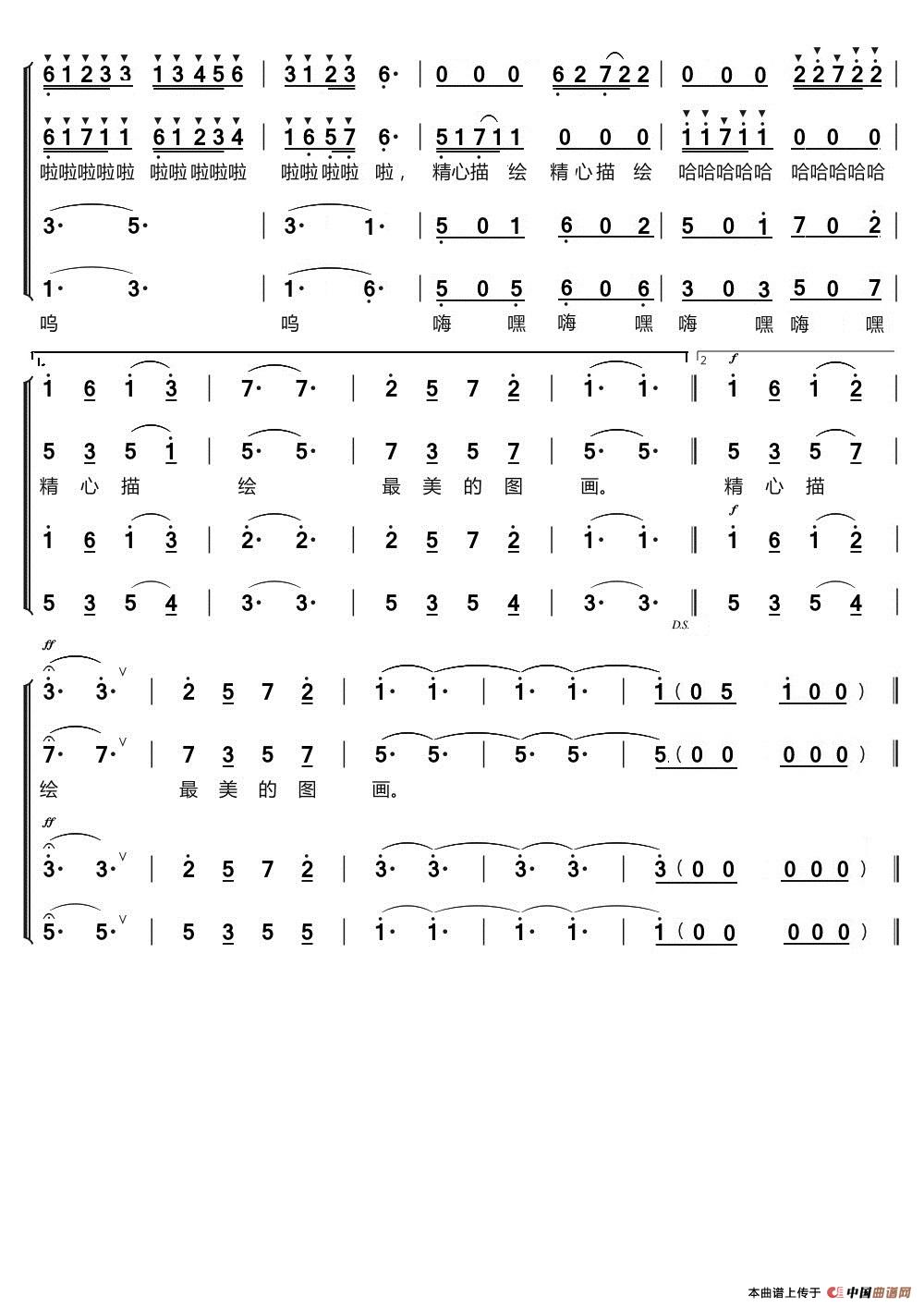 提示:在曲谱图片上单击右键,选择“图片另存为...”即可将曲谱保存到您的电脑中,打印时候可将图片插入到WORD中,调整合适大小打印即可。