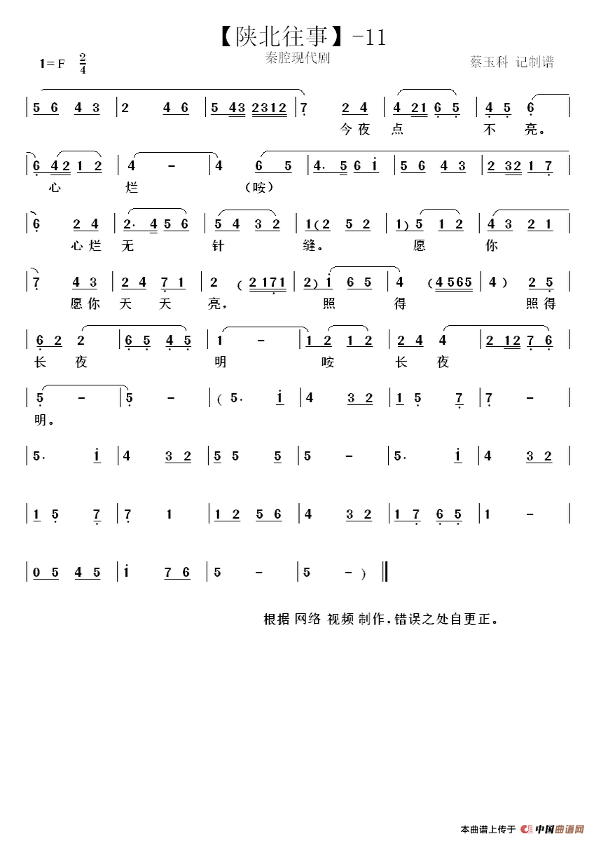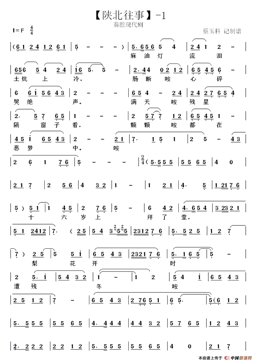 关于《秦腔【陕北往事】一折》曲谱的评论