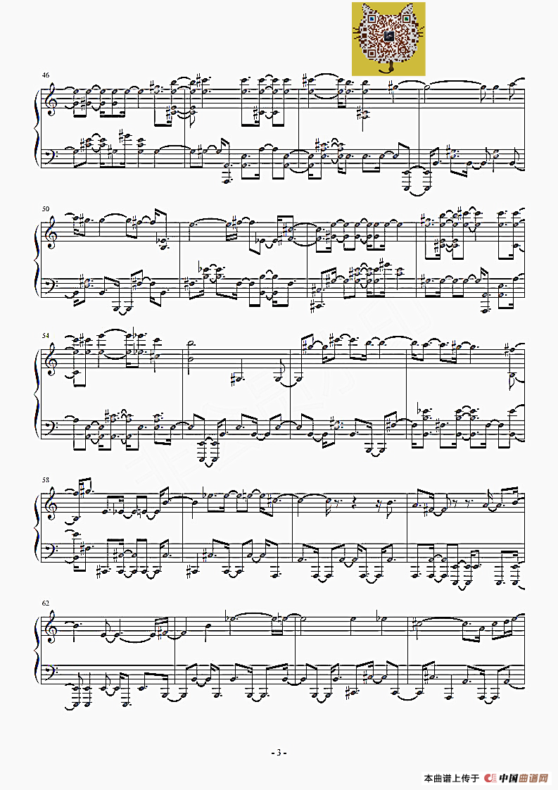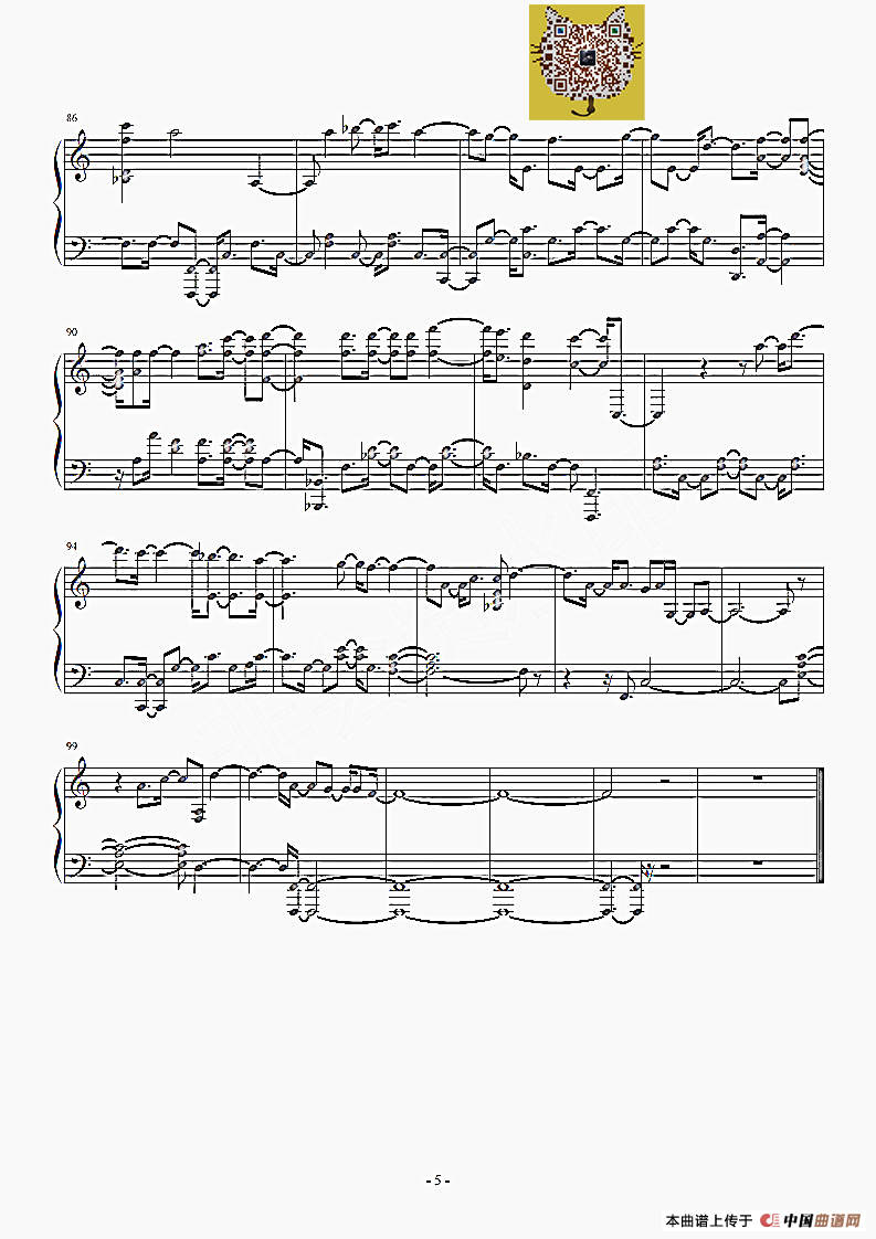 提示:在曲谱图片上单击右键,选择"图片另存为..."即可将曲谱保存到您的电脑中,打印时候可将图片插入到WORD中,调整合适大小打印即可。