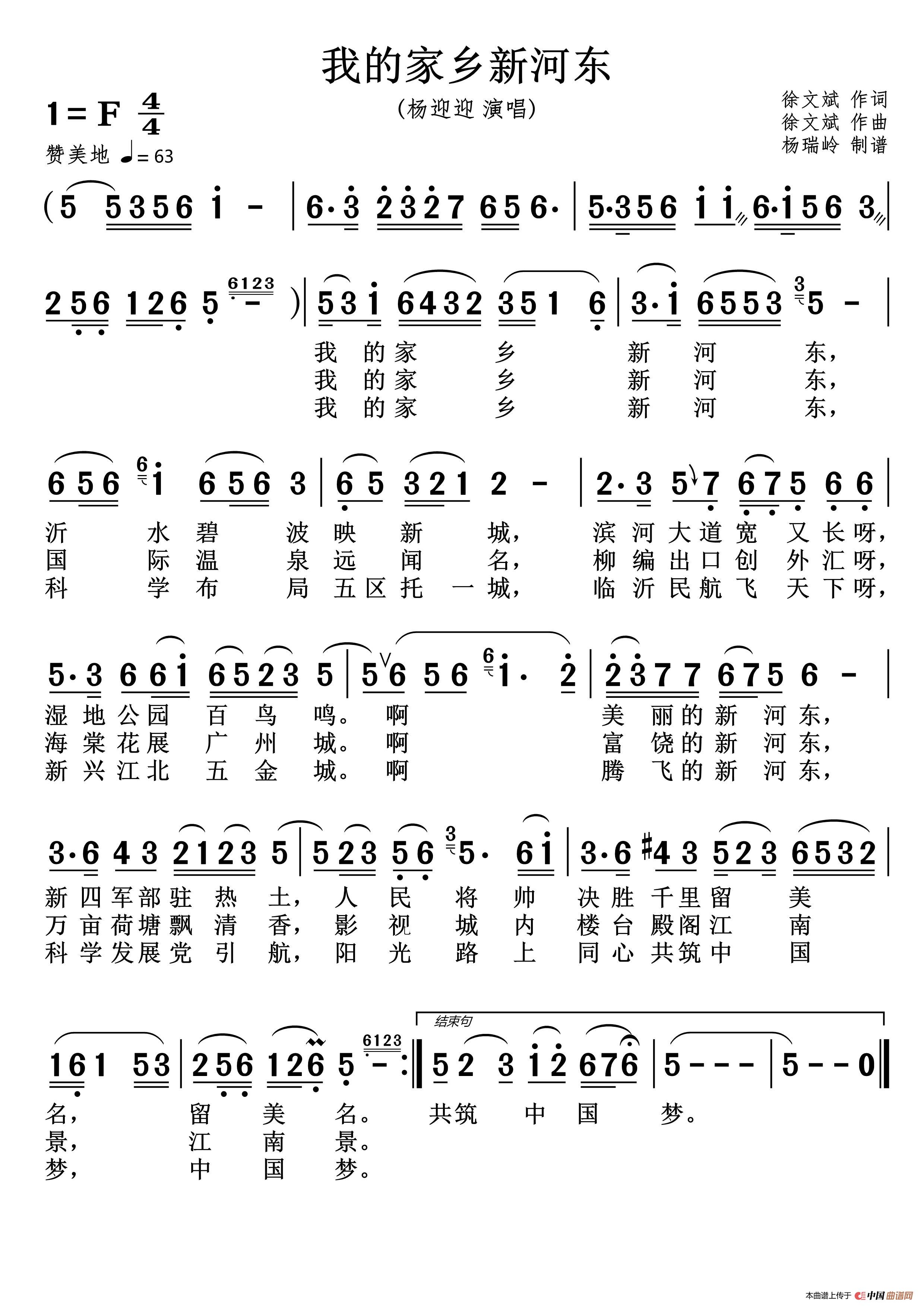 作词:徐文斌 作曲:徐文斌 演唱(奏):杨迎迎 来源:原创 上传:中国曲谱瑞苓